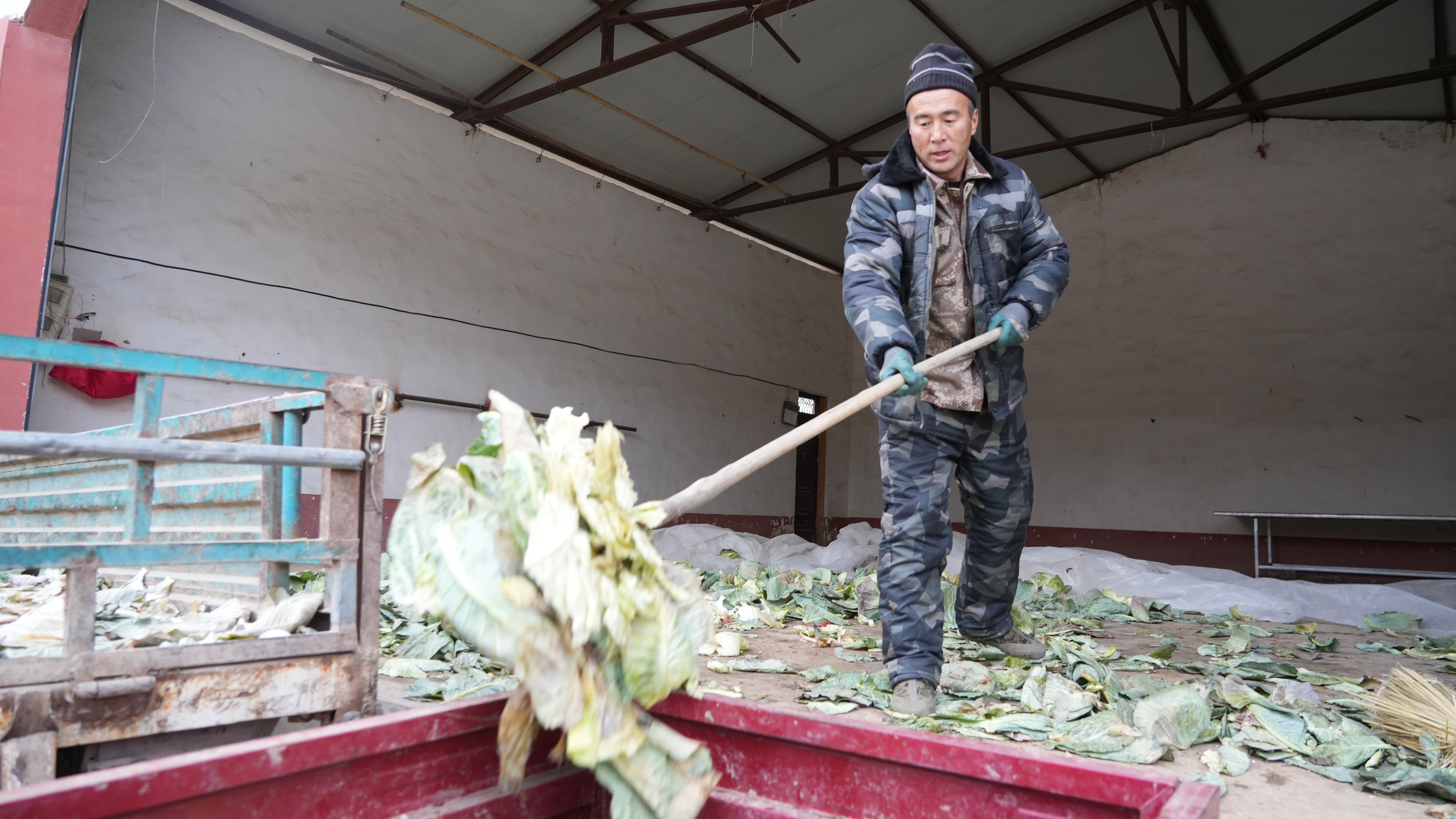 12月12日,西吉县吉强镇前咀村的戏台上,村民杨彦斌忙着晾晒刚从山上拉回的剩余包菜,这些菜将成为家中羊群的饲料。“今年我第一次在20多亩山地上种蔬菜,多亏田间路修通了,大车能上去机械化作业,产量增加了不少。”杨彦斌边干活边说。