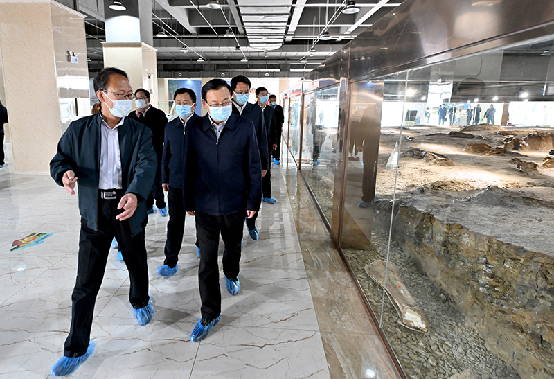 5月1日下午,梁言顺来到灵武国家地质公园恐龙化石遗迹园区,在博物馆听取化石资源考古挖掘、遗迹资源保护利用情况介绍。