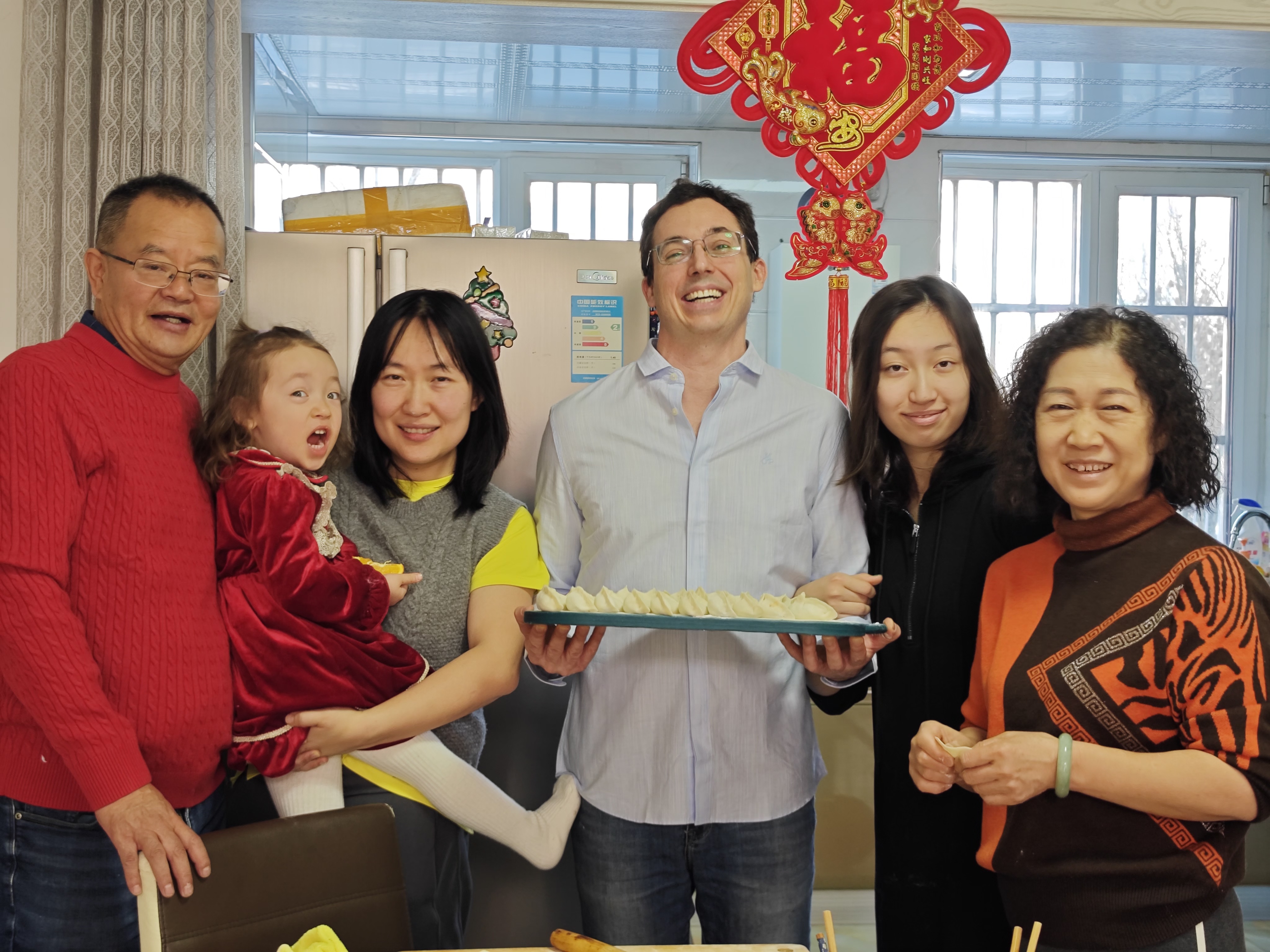 “新年快乐,龙年大吉,恭喜发财!”饺子煮好了,理查德一家和岳父岳母抱拳行礼,用中国式礼节互祝新年好。
