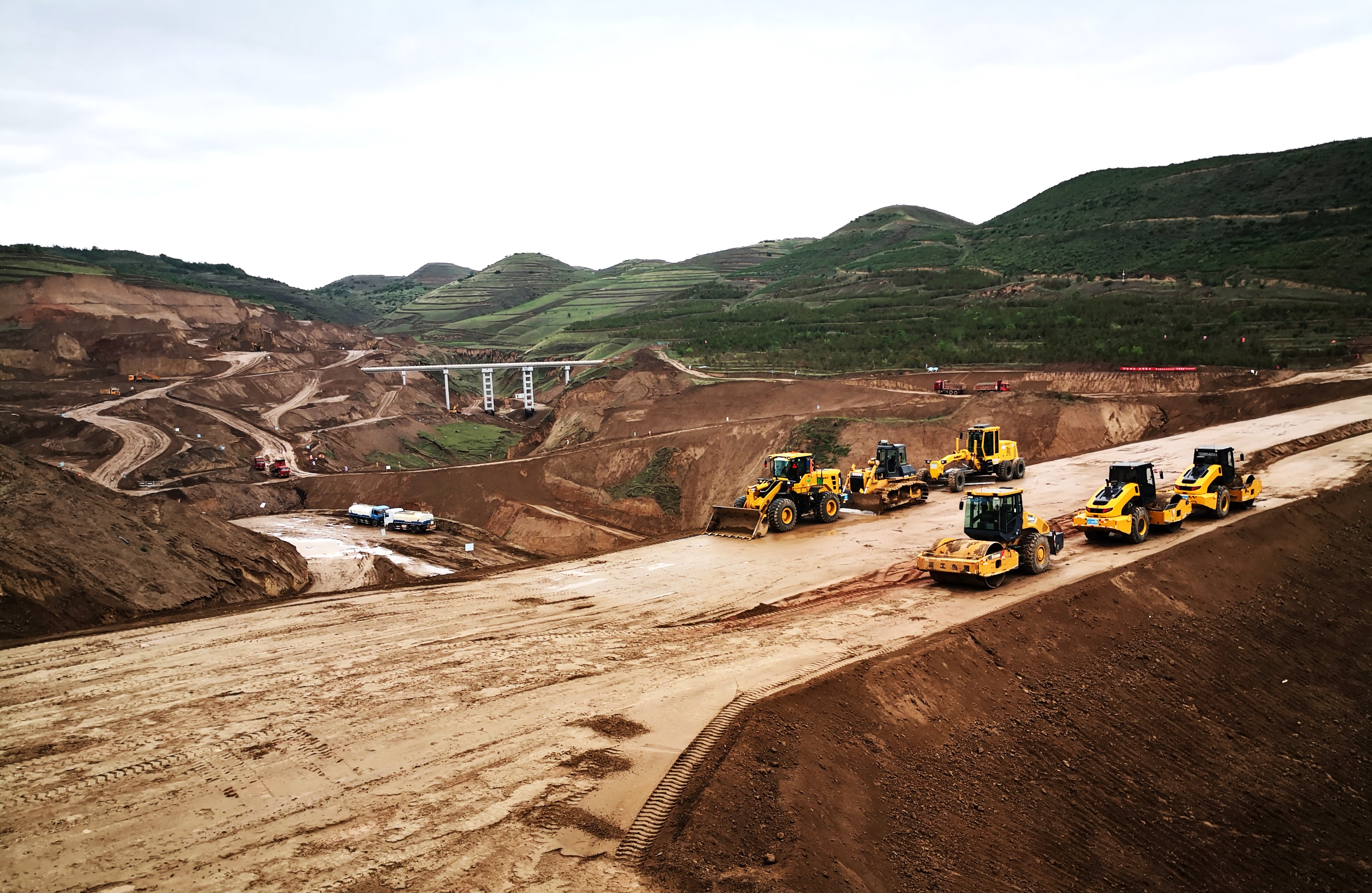 在施工现场,一道高达50多米的坝体耸立在两山之间,将沟壑截断,一辆辆压路机在大坝上来回碾压。“大坝总高58.8米,现在正进行大坝填筑、两岸护坡恢复、坝前混凝土面板浇筑及坝后混凝土隔梁浇筑和生态恢复等工作,按计划施工保质保量推进。”侯嘉说。