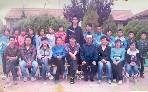 杨文学(后排中)小学毕业时与同学和老师合影。