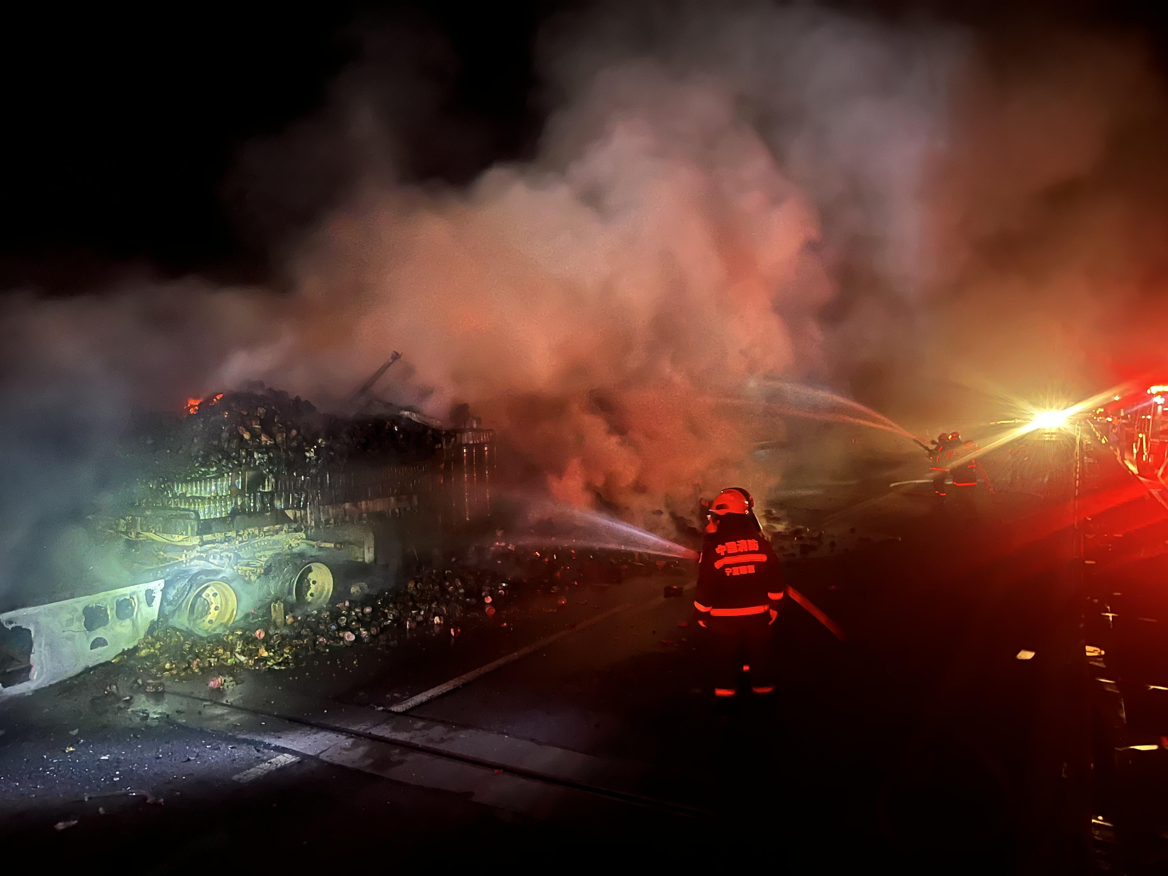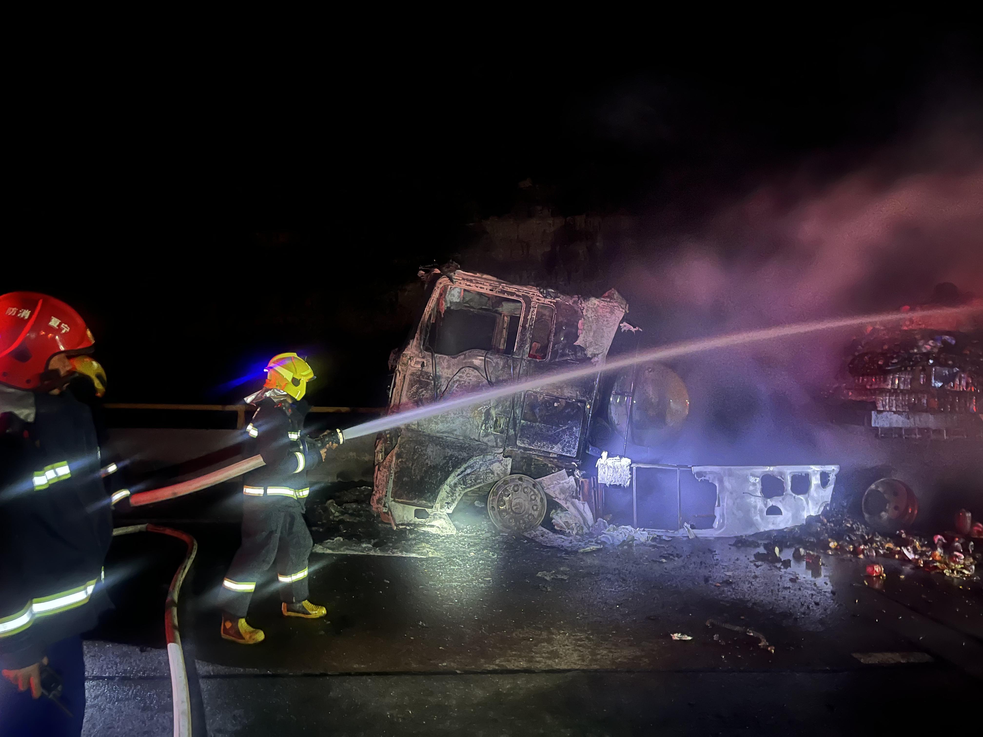 经过近5小时奋战,次日1时05分,火势被彻底扑灭,未造成人员伤亡。消防部门提示:驾驶员应定期检查车辆安全状况,长途行驶时注意适时休息,并随车配备有效灭火器材,防范火灾风险。