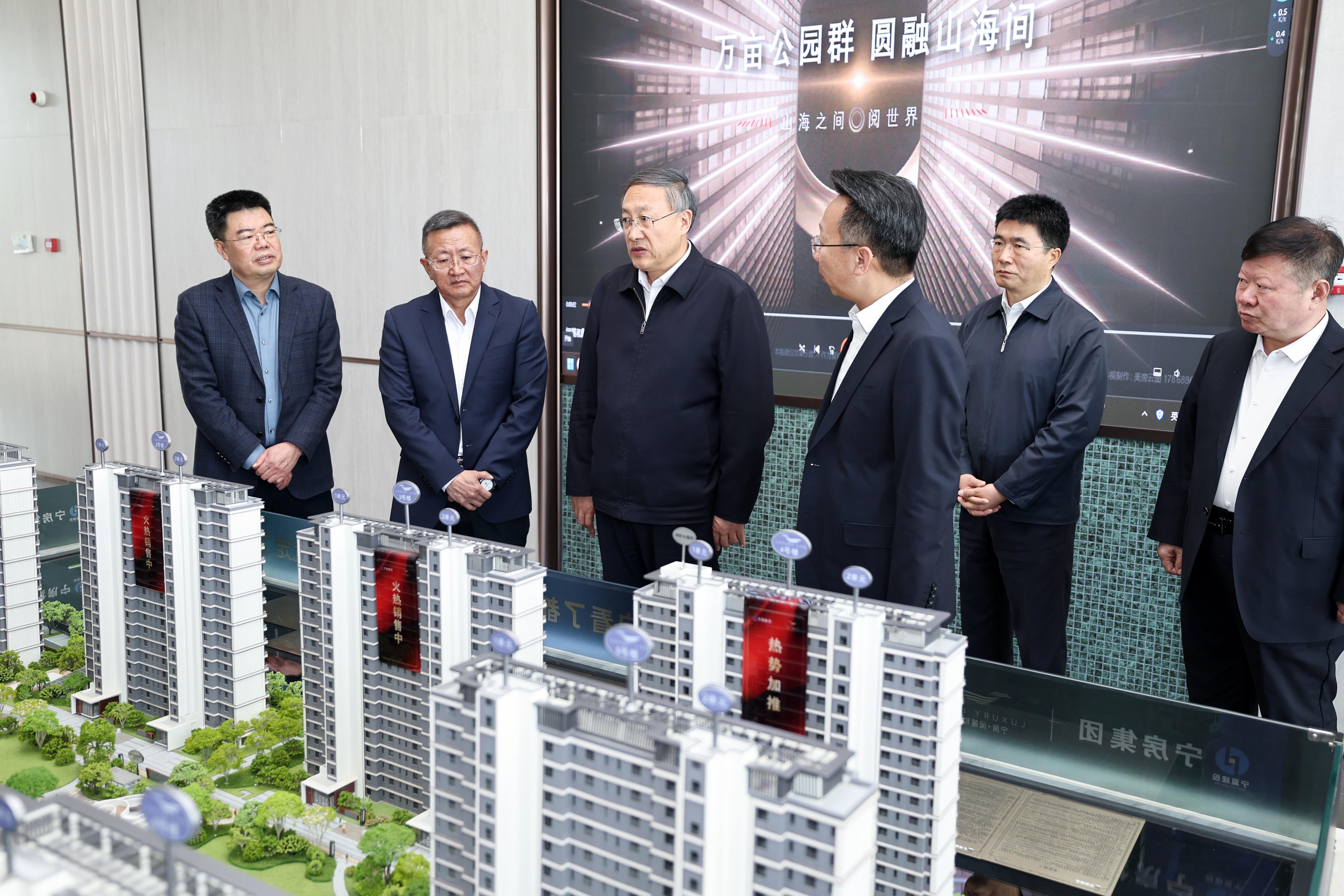 李邑飞在宁房集团阅麓和院项目现场,了解项目规划、土地供应、市场销售等情况。