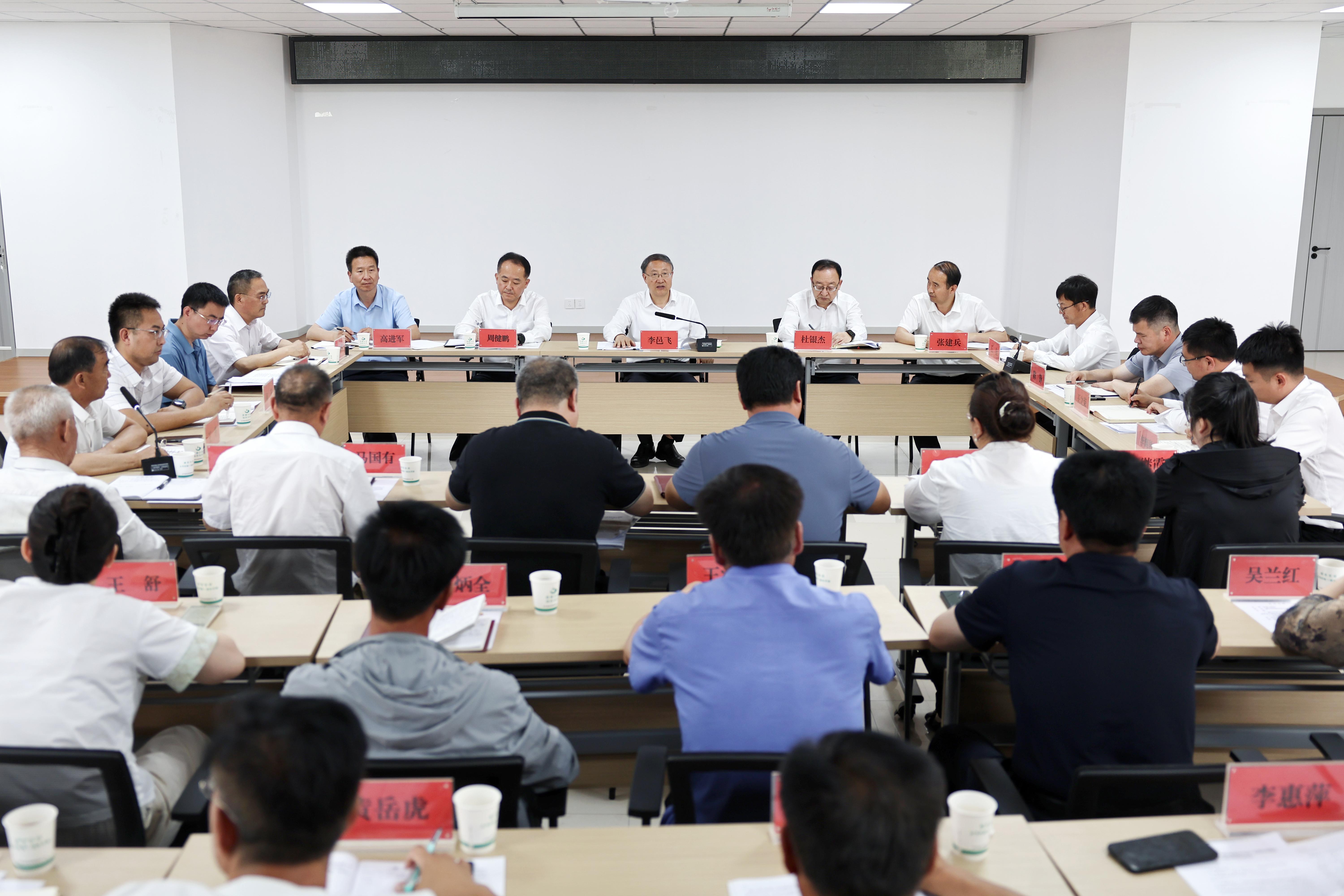 李邑飞在闽宁镇福宁村党群服务中心,与基层党员干部、群众代表、福建援宁工作队队员座谈交流,并讲专题党课。