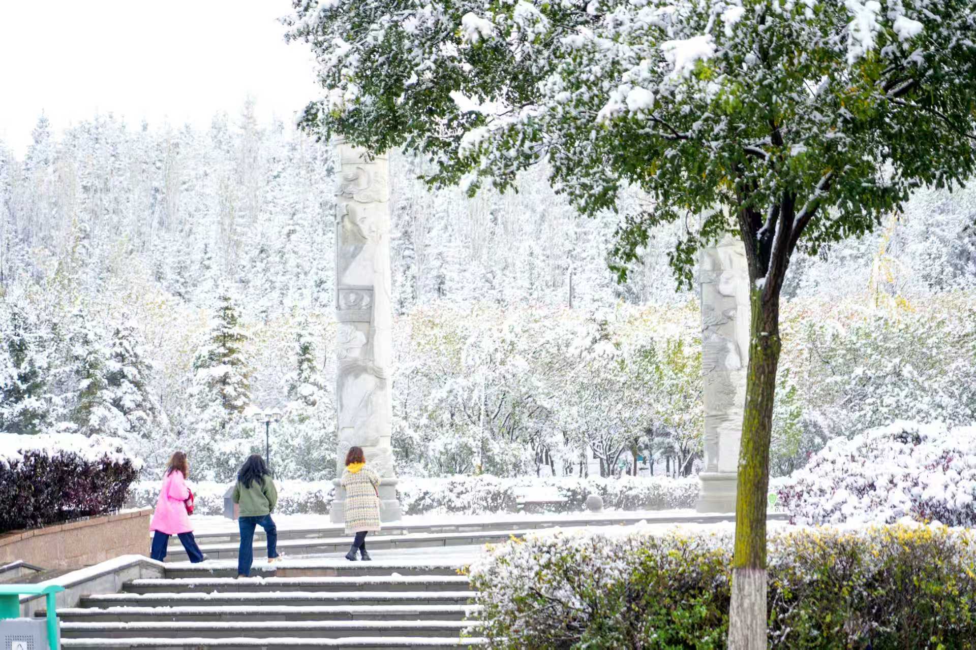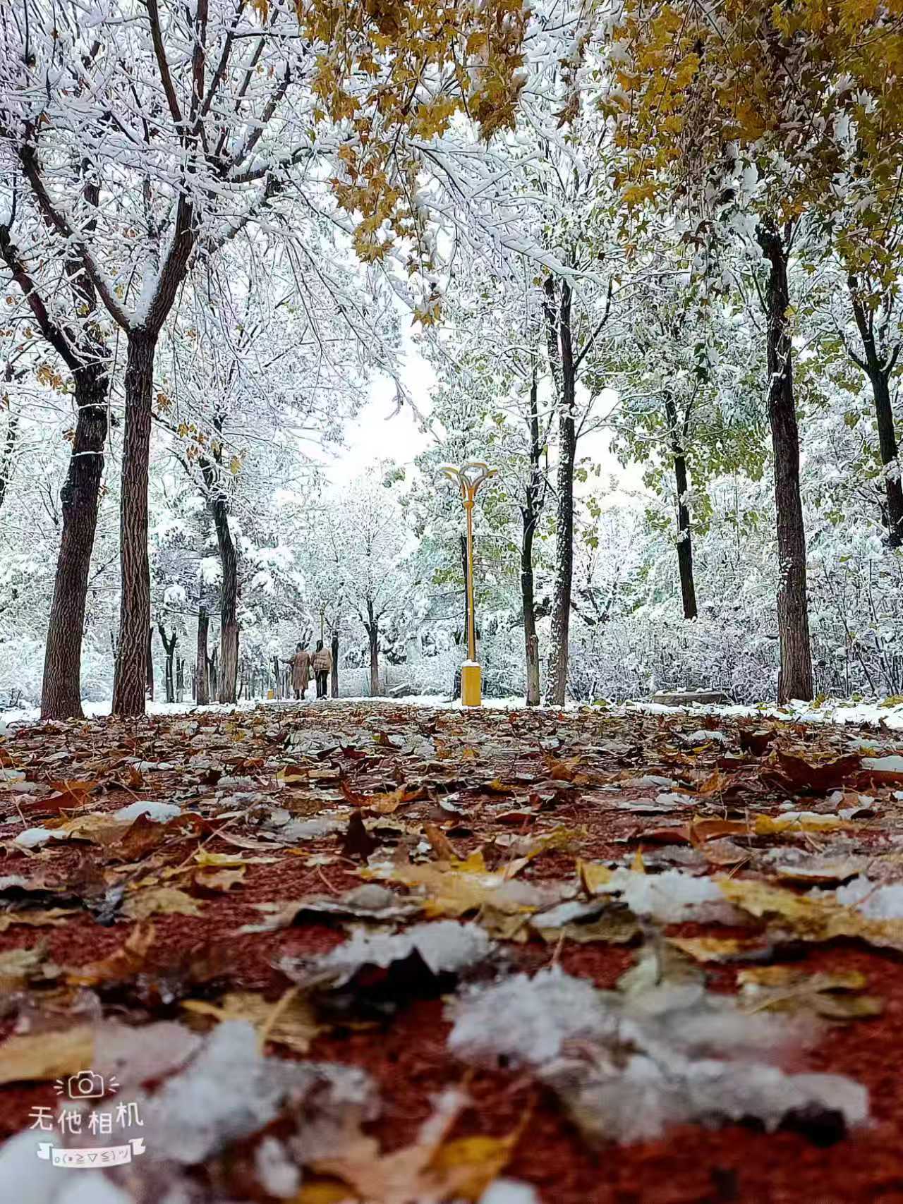 还未阅尽这满眼秋色,深秋的第一场雪又悄然撞入秋的怀抱,不似冬日的暴烈,倒像一位如约而至的旧友,带着清冽的气息,轻轻叩响了季节转换的门扉。秋的绚烂与冬的素雅在此刻完美交融,构成了一幅幅极具诗意的画面。树叶承载着蓬松的积雪,呈现出“白雪镶红边”的奇特景致,令许多早起赶路的市民和摄影爱好者惊喜不已,纷纷驻足,用镜头记录下这难得一见的秋雪美景。