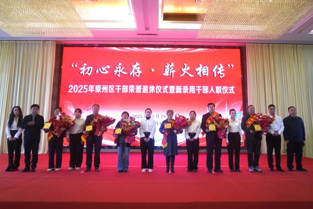 10月29日,“初心永存·薪火相传”2025年原州区干部荣誉退休仪式暨新录用干部入职仪式在固原宾馆举行。89名退休干部代表与60名新录用干部代表齐聚现场,通过“一退一进”的仪式联动,传承干部队伍优良作风,为原州区各项事业发展注入新活力。