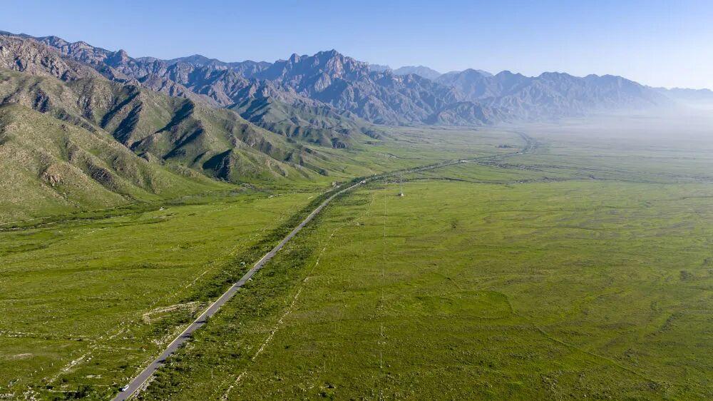 2025年7月29日,随着降水增多,昔日戈壁荒滩的贺兰山东麓冲积扇如今绿意盎然。新华社记者王鹏摄