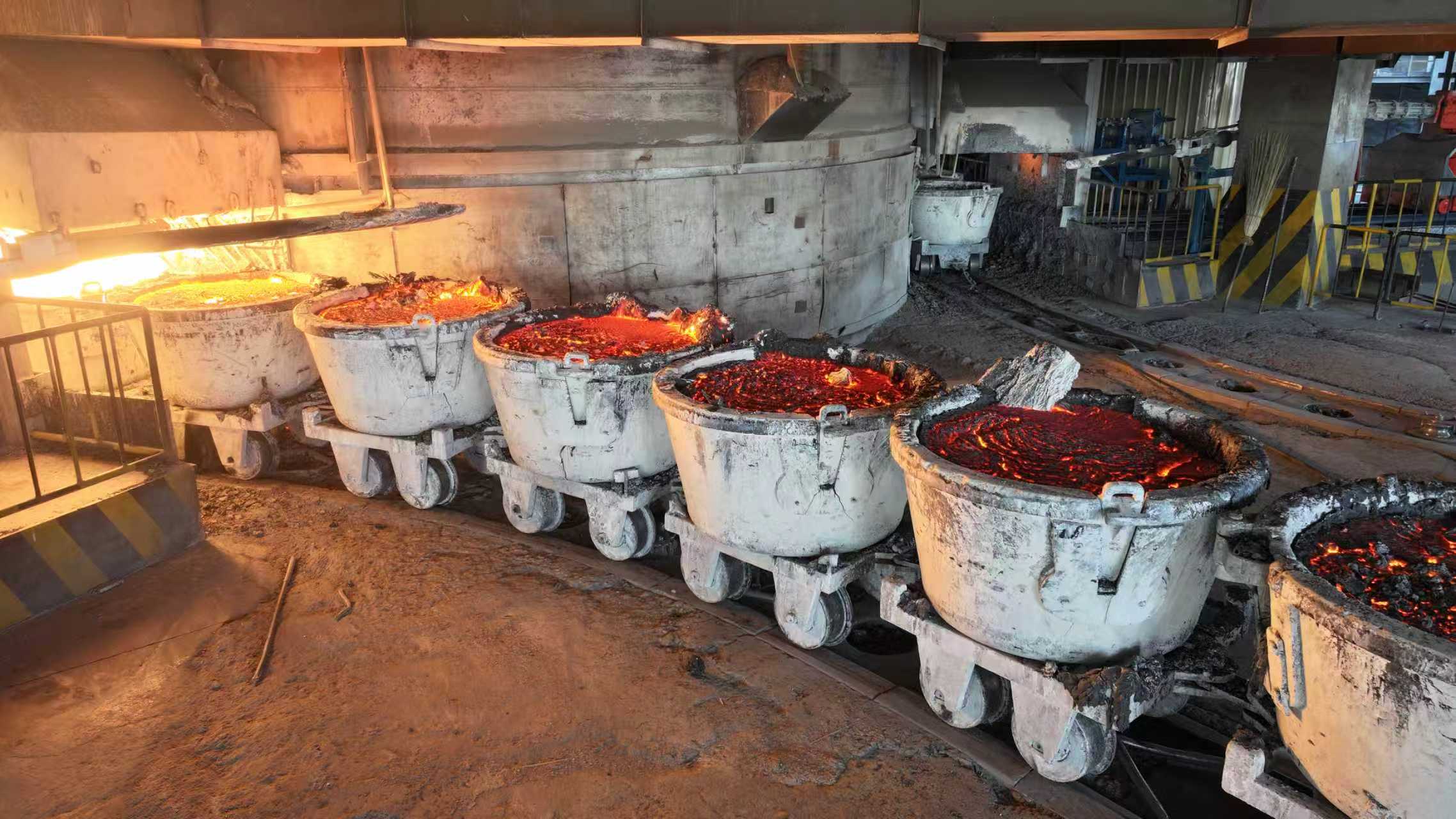 电石出炉曾是高危高耗环节,工人需直面1600℃熔融液体,承受热辐射、一氧化碳中毒、炉料喷溅等风险,4台电石炉曾需60余名工人轮班作业。今年5月,该公司启动出炉机器人建设,10月初,12台设备全部投用,彻底实现“人机分离”。“机器人严格按工艺精准操作,出炉时间更可控,电石发气量稳定性提升,吨电石电耗下降,整体效率提高10%。”公司负责人尚继荣介绍,目前企业电石日产量达960吨,年产能超30万吨,2025年产值已达8.8亿元。