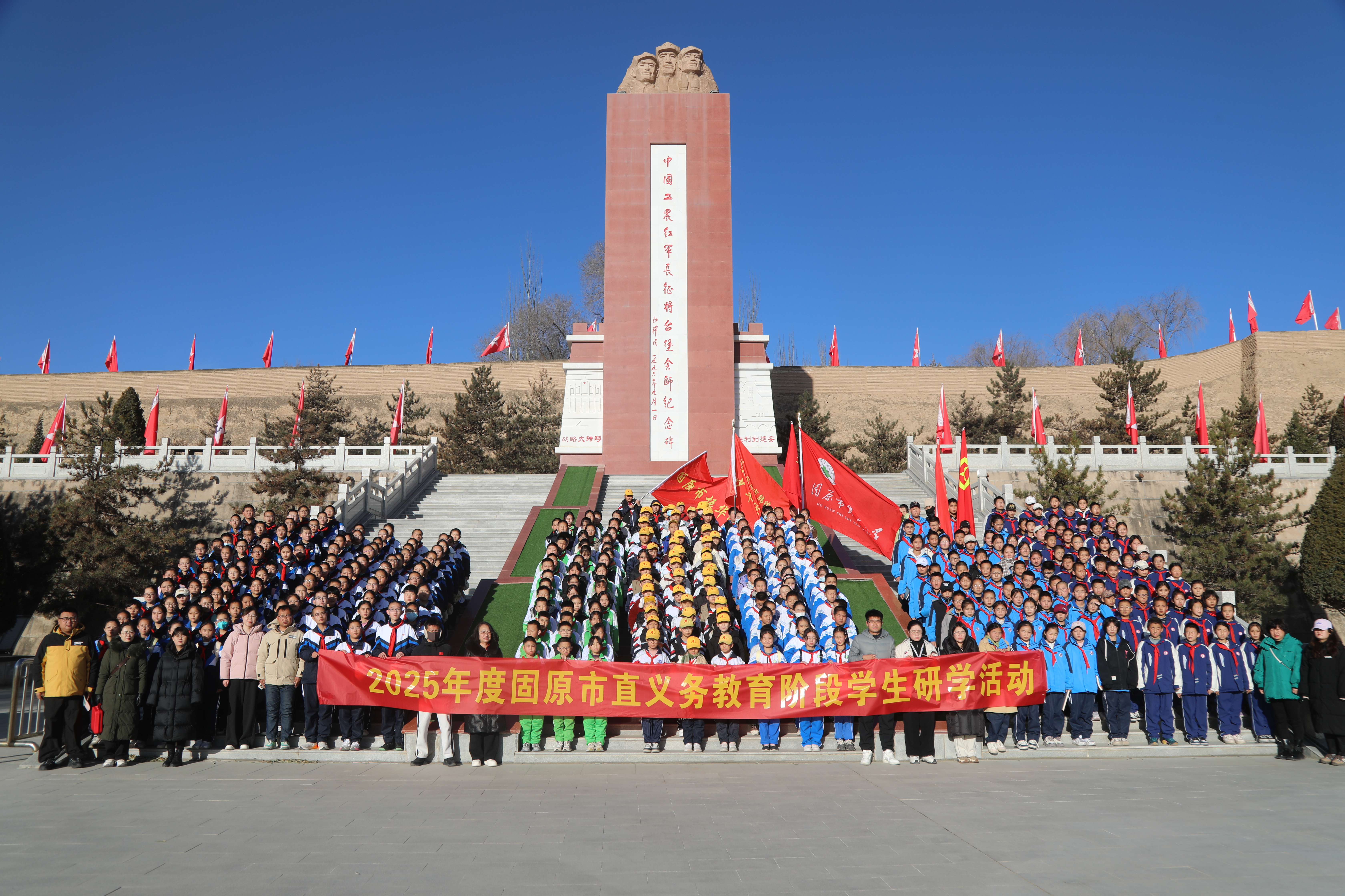 12月3日至4日,市教体局组织市直小学、初中700名师生,分两期开展以“铸牢中华民族共同体意识和劳动教育”为主题的研学活动。师生们在西吉县将台堡红军长征会师纪念园、红军寨研学基地和隆德县六盘山药用植物科普教育基地,在沉浸式参观研学与动手实践中感悟红色精神、体悟劳动育人真谛。