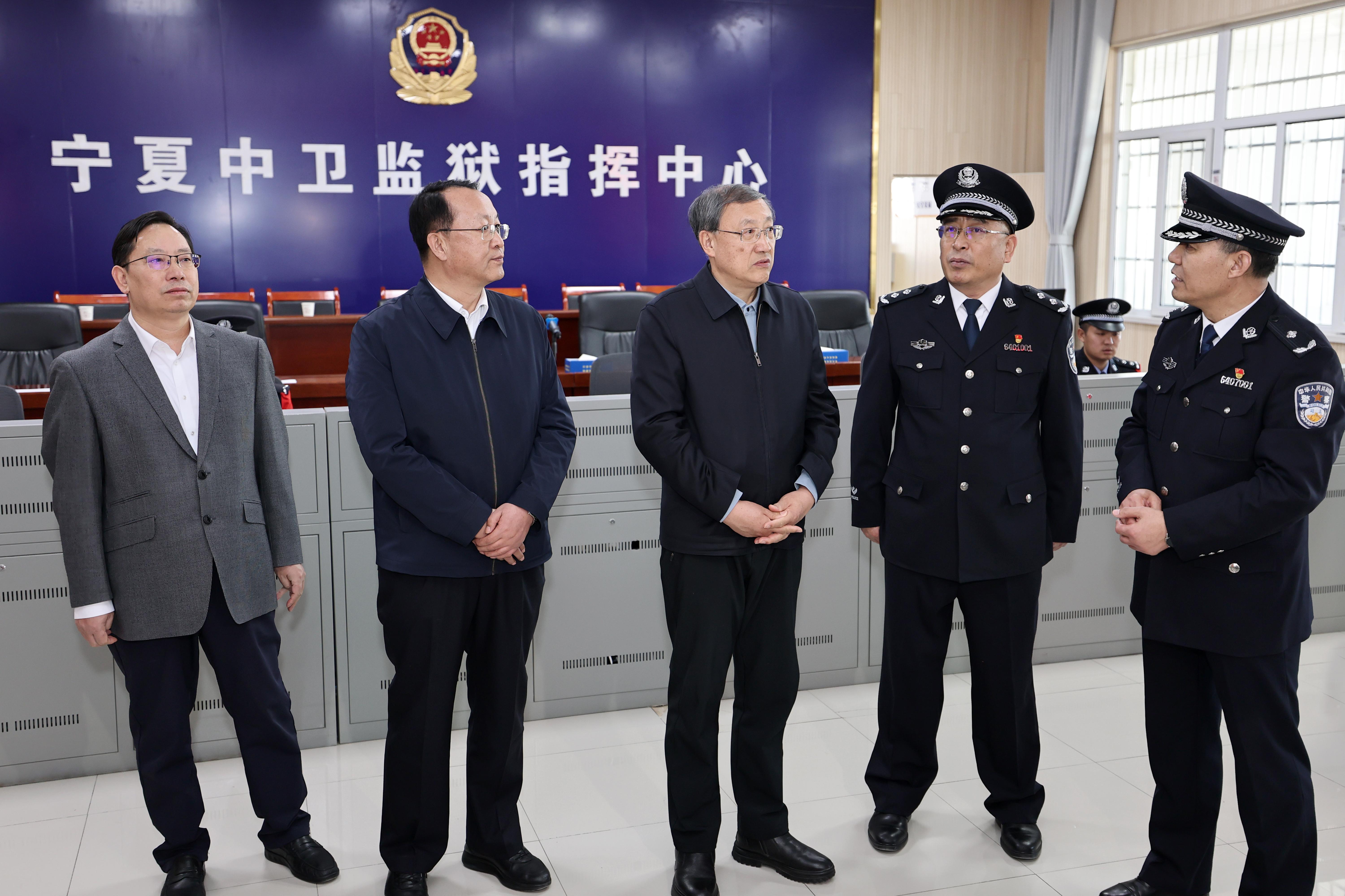 李邑飞在中卫监狱,调研监狱执法规范化和干警队伍建设等工作。