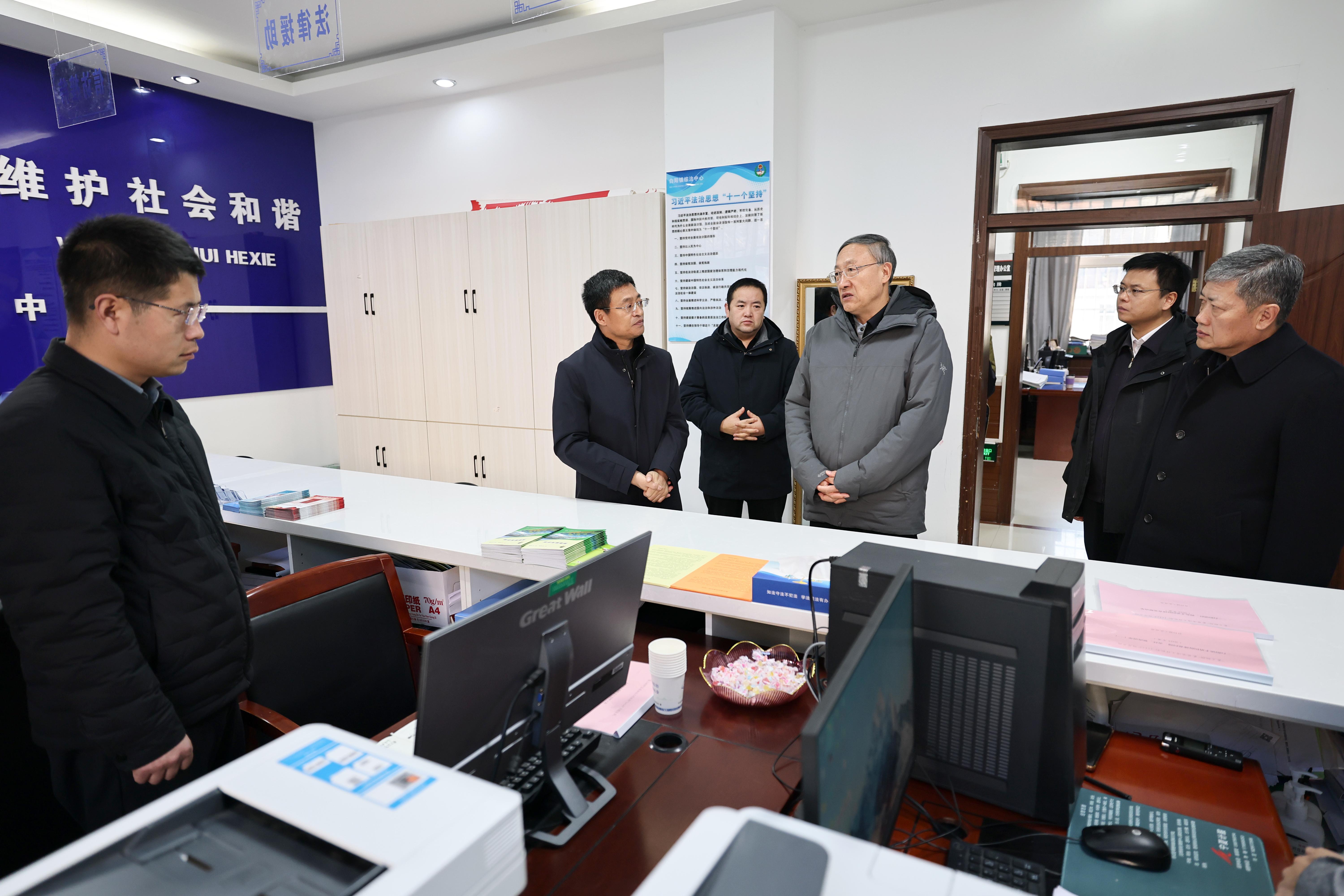 李邑飞在彭阳县白阳镇综治中心,调研社会治安整体防控体系和能力建设等情况。