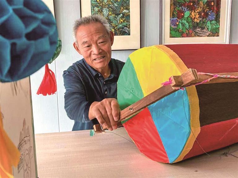 传统是根,但也要结合人们的需求去改进。从陕西回来后,王启祥便开始对传统灯笼制作进行创新。材料上,他尝试用布面、塑料替代部分易破损的纸张,让灯笼更耐用、更适合日常摆放;造型上,他打破传统圆形灯笼的局限,结合生活场景设计出鼓形灯笼、手提灯等多种样式,有的灯笼还加上了可折叠的设计,方便携带与收纳。“就拿鼓形灯笼来说,我参考了鼓的造型,支架用细铁丝固定,表面用纸和布包裹,再贴上剪纸,既保留了传统韵味,又比以前的纸灯笼更结实、更好看。”