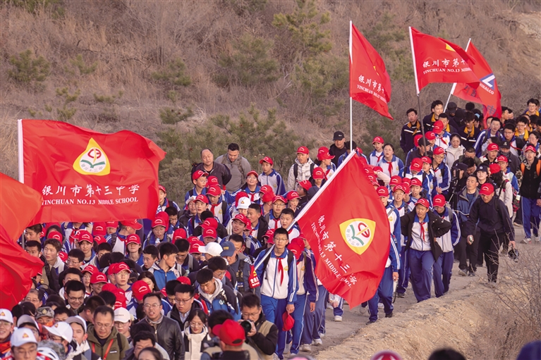 来自固原市固原二中、弘文中学以及宁夏部分学校的2300余名师生徒步往返108里,赴任山河烈士陵园祭奠英烈。