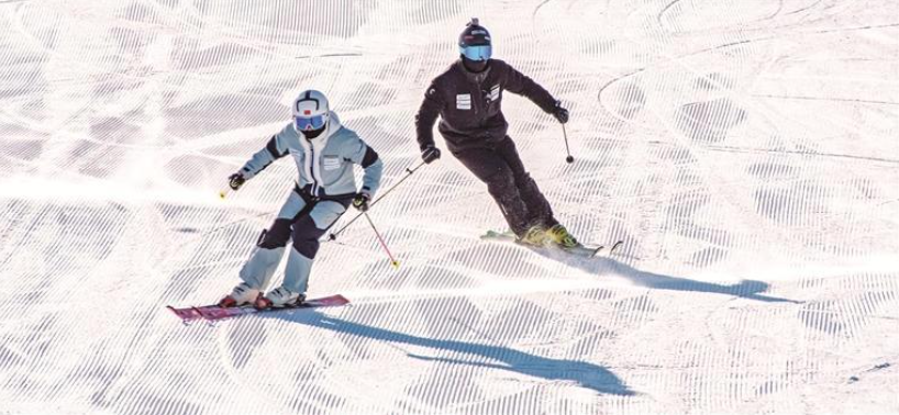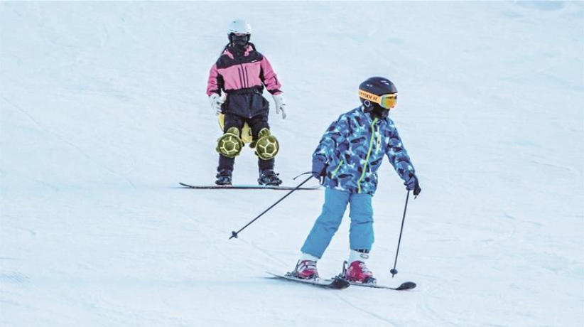 雪道上,既有资深滑雪者的流畅身姿,也有新手蹒跚学步的可爱模样。来自甘肃省平凉市的靳孝文正跟着教练练习基本动作,他说:“雪道设计合理,教练耐心,适合从新手到高手的不同滑雪需求。滑完雪后,最期待的事就是打卡当地特色美食,好好犒劳一下自己。”