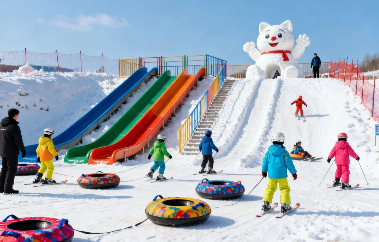 这座占地160万平方米的滑雪场,凭借240米的垂直落差,吸引了不少滑雪爱好者前来挑战。而对初次尝试或携家带口的游客,这里也同样贴心:除了为不同水平滑雪者准备的8条雪道,还设有专门的儿童戏雪区。雪圈、雪地坦克、雪地摩托……欢笑声在雪地里漫开。