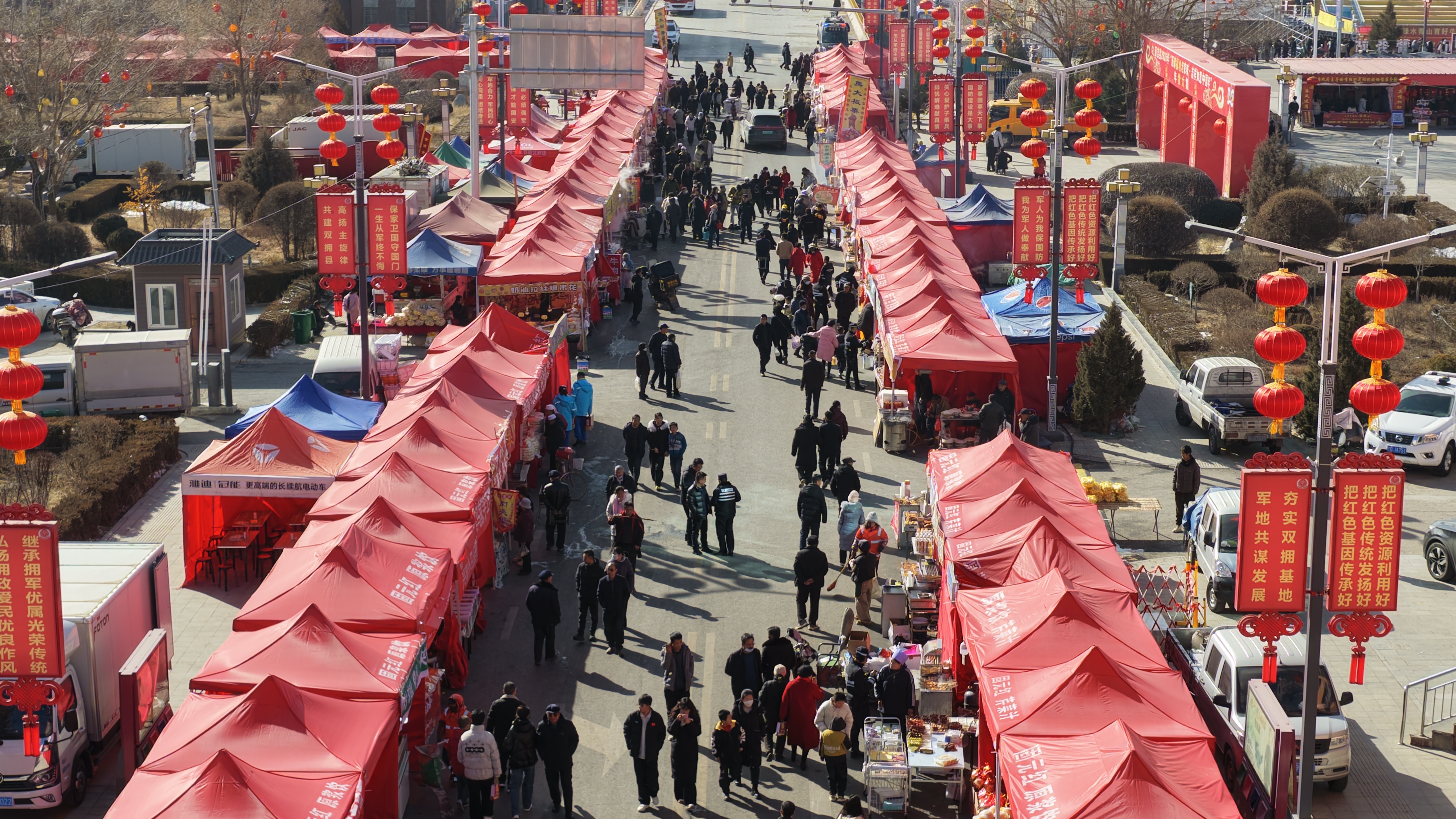 新年装饰区年味最为浓厚,火红的灯笼、喜庆的对联、寓意吉祥的福字将新年的喜庆气息拉满。同时,西吉县马兰刺绣、西吉县乡土文化创意产业有限公司等本地文创企业,推出新年系列马年胸针、挂链、枕头等文创新品,以精致的做工、新颖的设计,融合传统民俗元素与现代审美,成为大集上的“网红单品”。活动期间,大集推出“满减优惠”“满额赠礼”等促销活动,并设置“新春盲盒抽奖”环节,让群众在购物中收获惊喜,感受浓浓的年味与暖意。“今年的大集特别热闹,专门领着孩子过来给家里备点年货,看看秦腔大戏,感受一下新年的烟火气。”西吉县群众杨国生说。