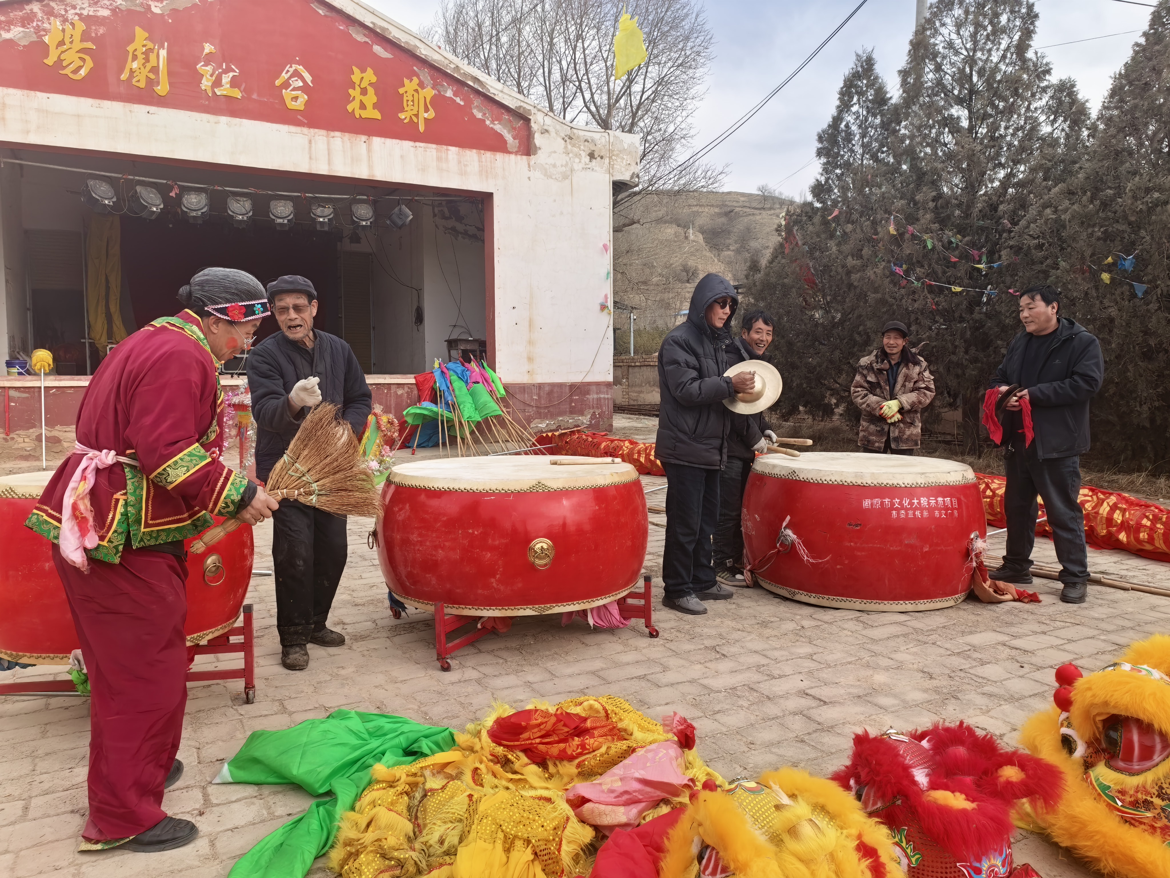 农历腊月二十三,清晨寒气未消,彭阳县古城镇郑庄村却已“热”了起来。郑庄村合社剧场广场上,锣鼓震天,唢呐响亮,金红狮子跃跃欲试——一年一度的社火排练,正进入最紧锣密鼓的阶段。