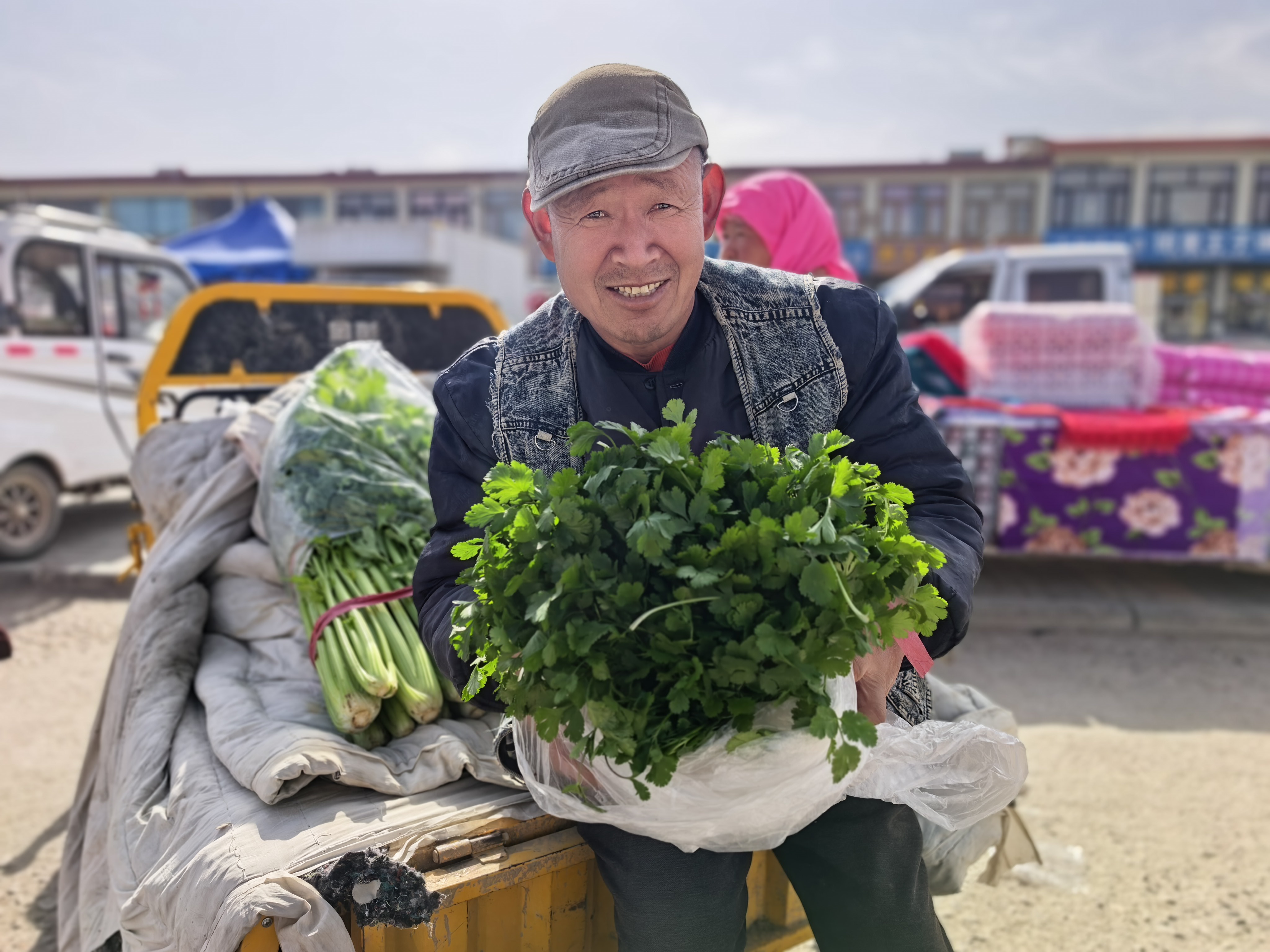 “新鲜的,自产的,温沟大棚的菜,快来看!”马风尚把芹菜、香菜扎得齐整,绿得鲜灵。年关近了,他盼着早点儿卖完,好回去照料棚里新育的秧苗。对他而言,生活就是一茬接一茬的希望——卖完手里的,棚里还有新苗。