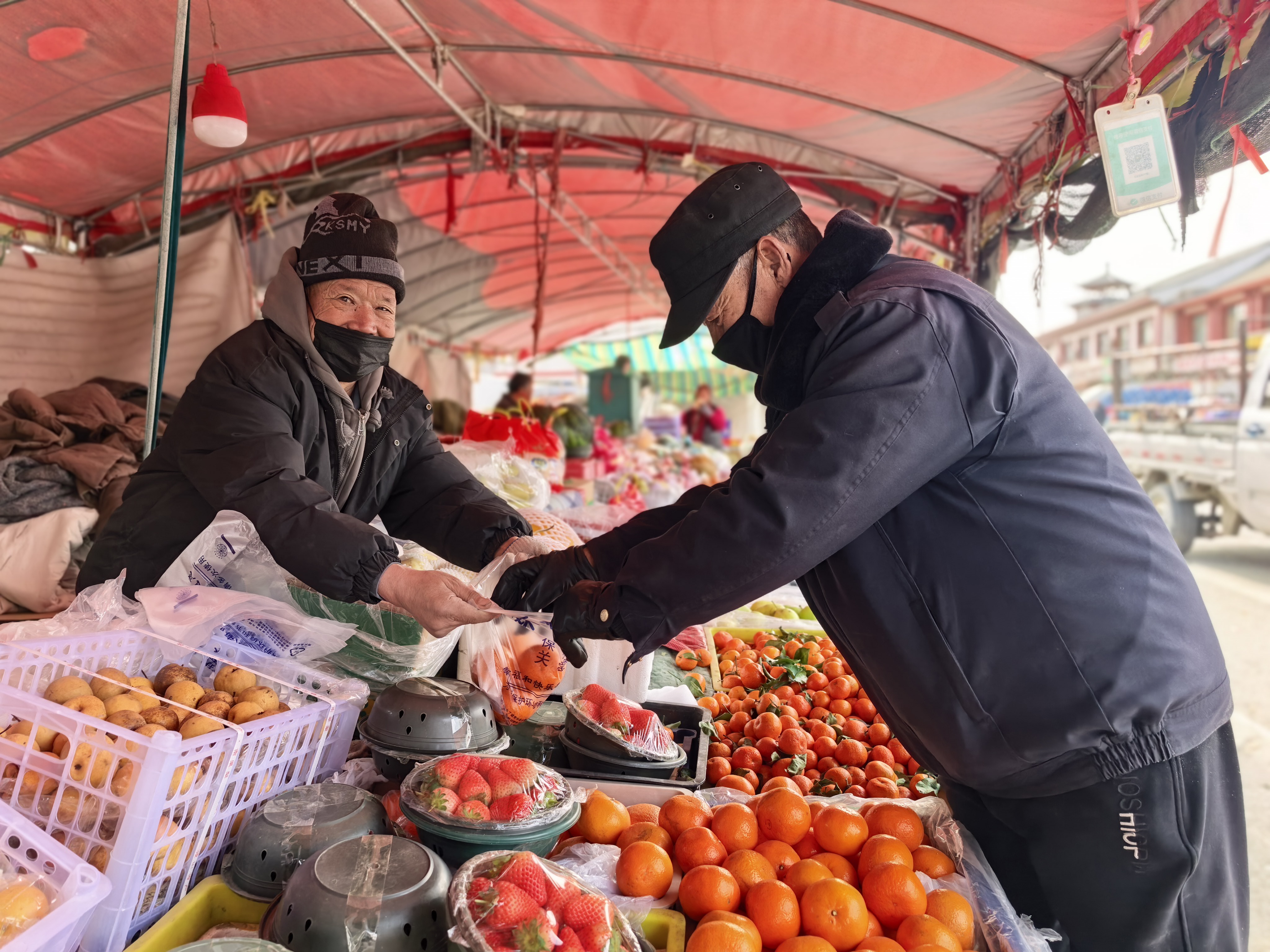每个摊位背后,都是一段具体的人生。水果摊主李建海,20年前从泾源县落脚至此,如今守着水果摊,“一天挣几百块,心里踏实。”市场出口附近,马得平的调料铺子窄小,年前这些天却挤满了人。“都等着调料炸年货呢!”他手上称重不停,“忙才好,说明日子红火!”