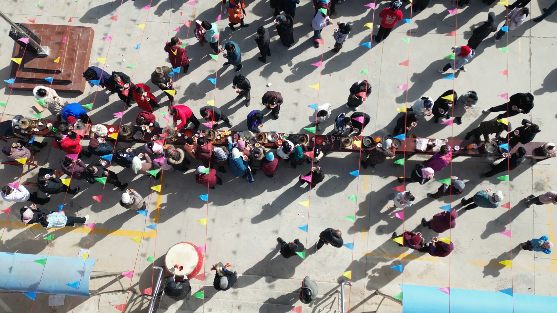 当天一大早,村里的十几名妇女齐聚装锅,将这一年来的丰收与喜悦统统装进锅里。正午时分,随着第一声锣鼓敲响,村里的留守老人、归乡的游子、走亲访友的宾朋围在桌子两边。热气缭绕间,大家举杯畅饮,脸上洋溢着比阳光更灿烂的笑容。