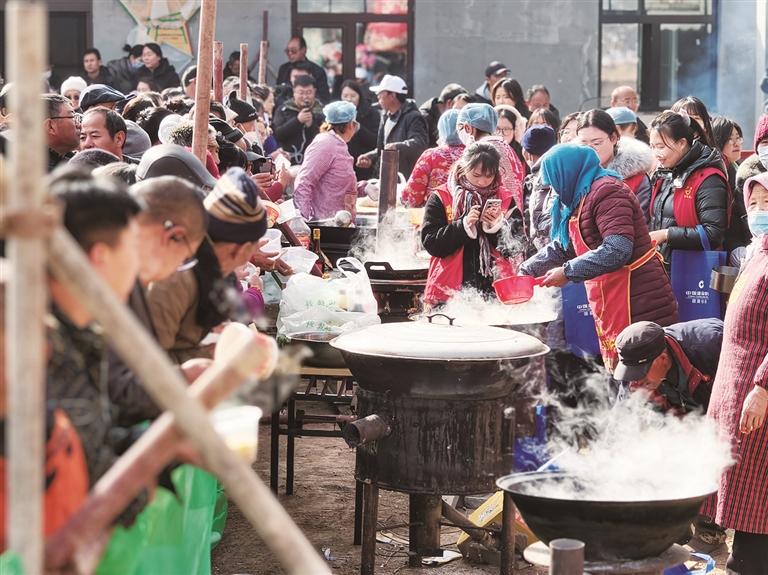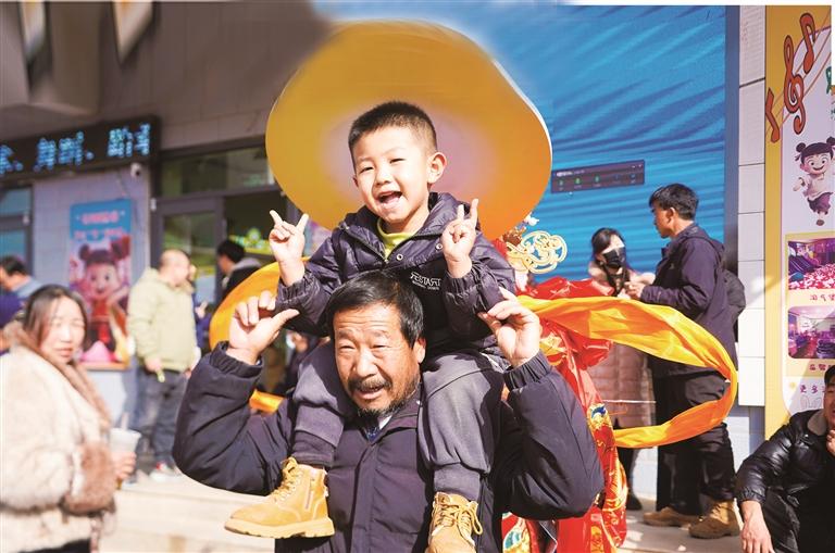 几步开外,油锅“滋啦”作响,金黄的糖糕、油饼刚出锅,就被守在一旁的孩子们买走。人流推着人流走,吆喝声、讨价还价声、熟人偶遇的寒暄声,“塞”满了整条街道。“赶集赶的就是个气氛,你看这人挤人的,年味不就来了嘛!”李霞提着刚买的蔬菜和一对灯笼,笑意盈盈。