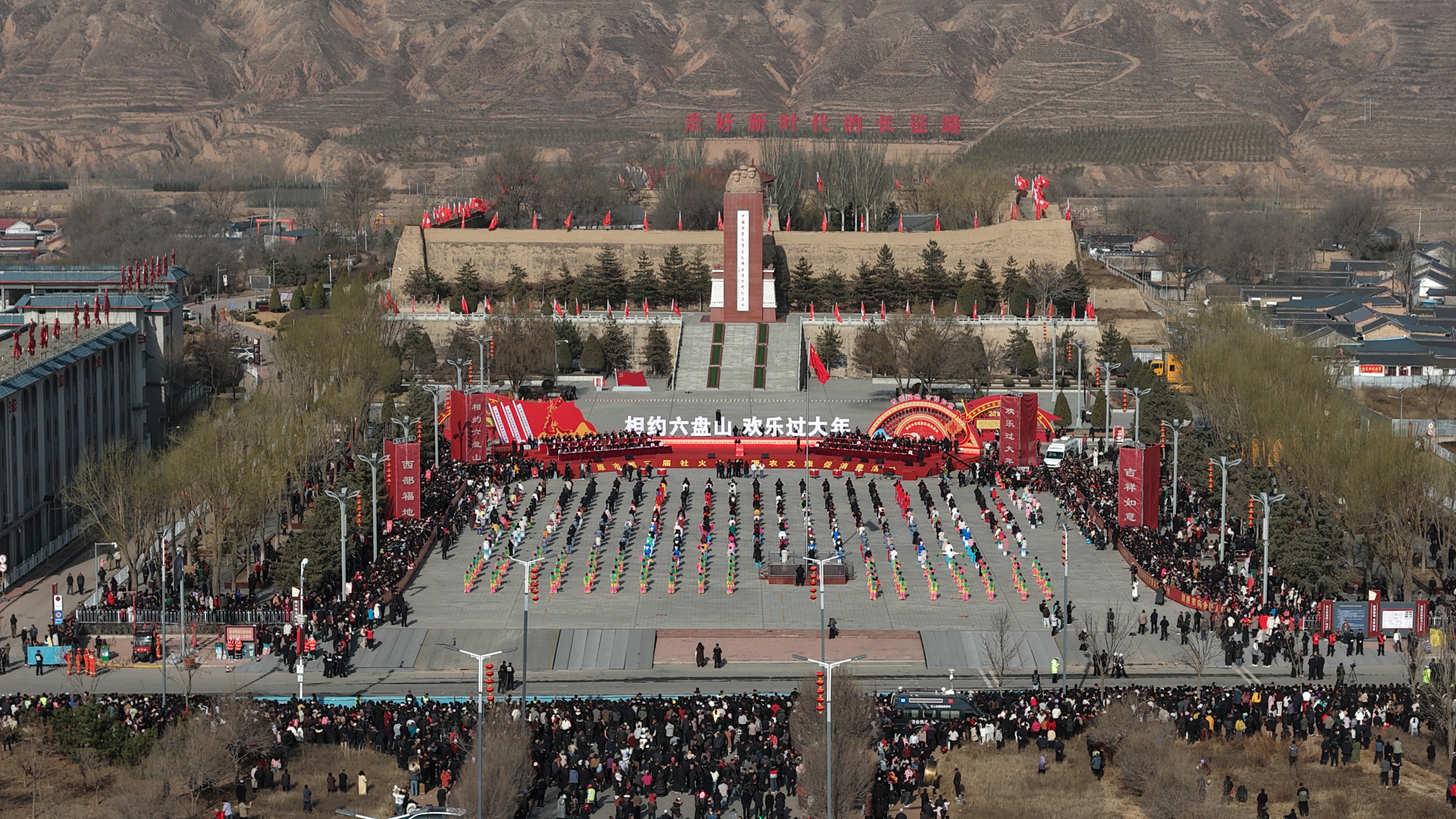 六盘山下春来早,将台堡前社火红。3月3日,元宵佳节,“相约六盘山·欢乐过大年”固原市第三届社火大赛暨农文旅促消费活动在西吉县将台堡红军长征会师纪念园会师广场举行。来自福建、江西、贵州、陕西、甘肃、青海、宁夏等省区的17支社火代表队千里相聚,以传统民俗为载体,不仅舞出了红红火火的节日盛景,更舞出了各族儿女“中华民族一家亲”的深厚情谊和走好新时代长征路的昂扬斗志。