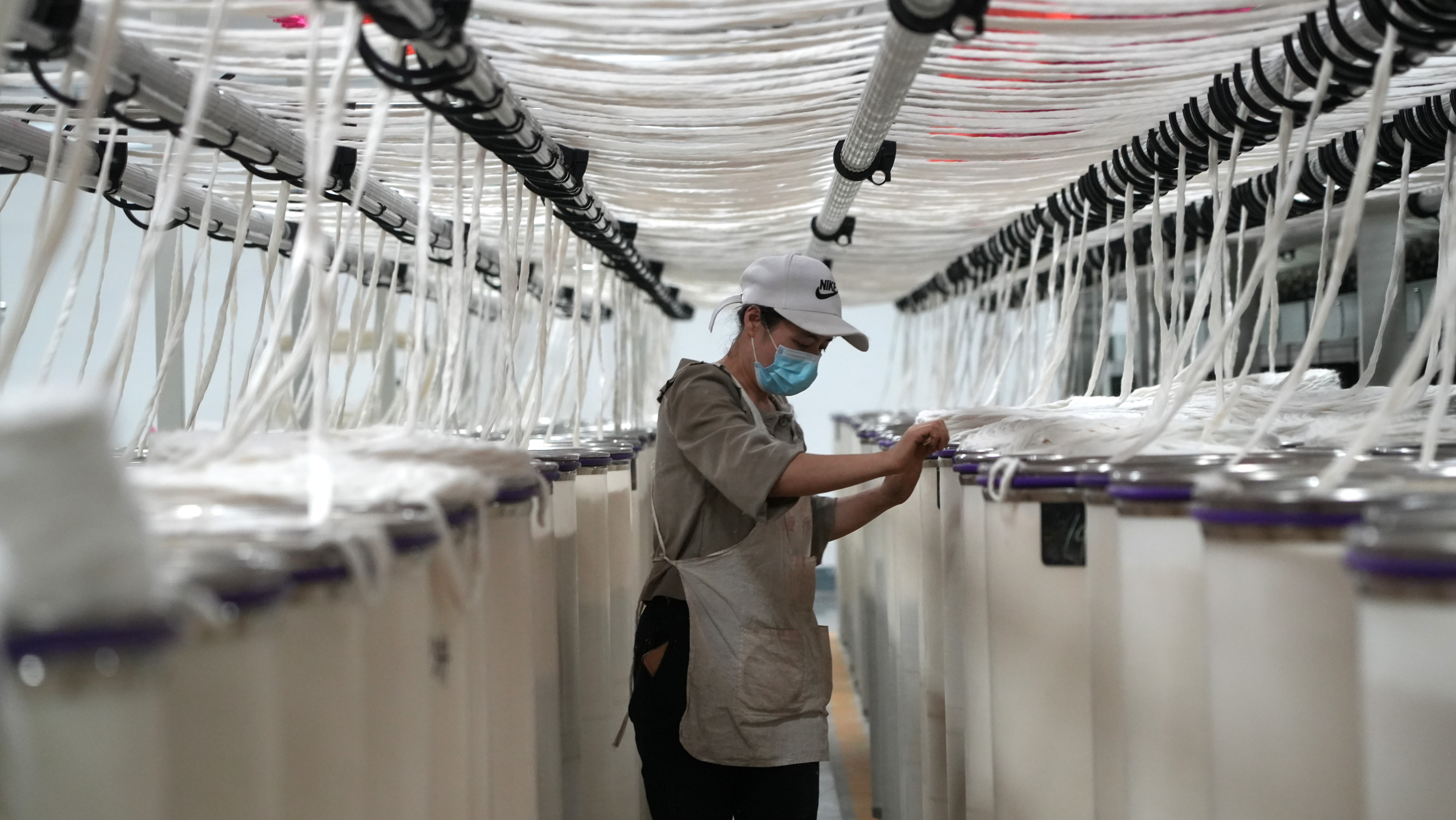 园区内企业同样也是满产赶单的繁忙景象。在宁夏美臣纺织科技有限公司车间,自动化机器高效运转,丝线飞速卷绕成型,工人们各司其职、有序作业,各条生产线满负荷运行,企业正开足马力赶制订单。“正月初八开工,98%的员工到岗,我们今年的订单已经都排满,一天生产35吨左右。”公司生产部经理张红娟说。