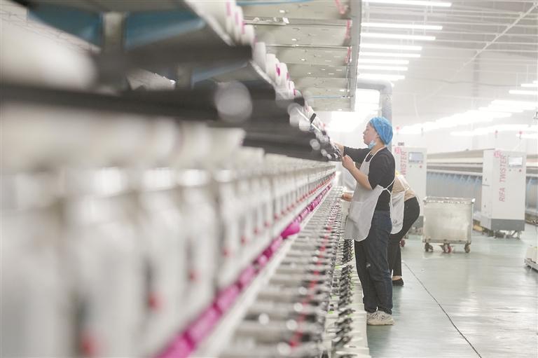 宁夏闽泰纺织有限公司纺织工人专注作业