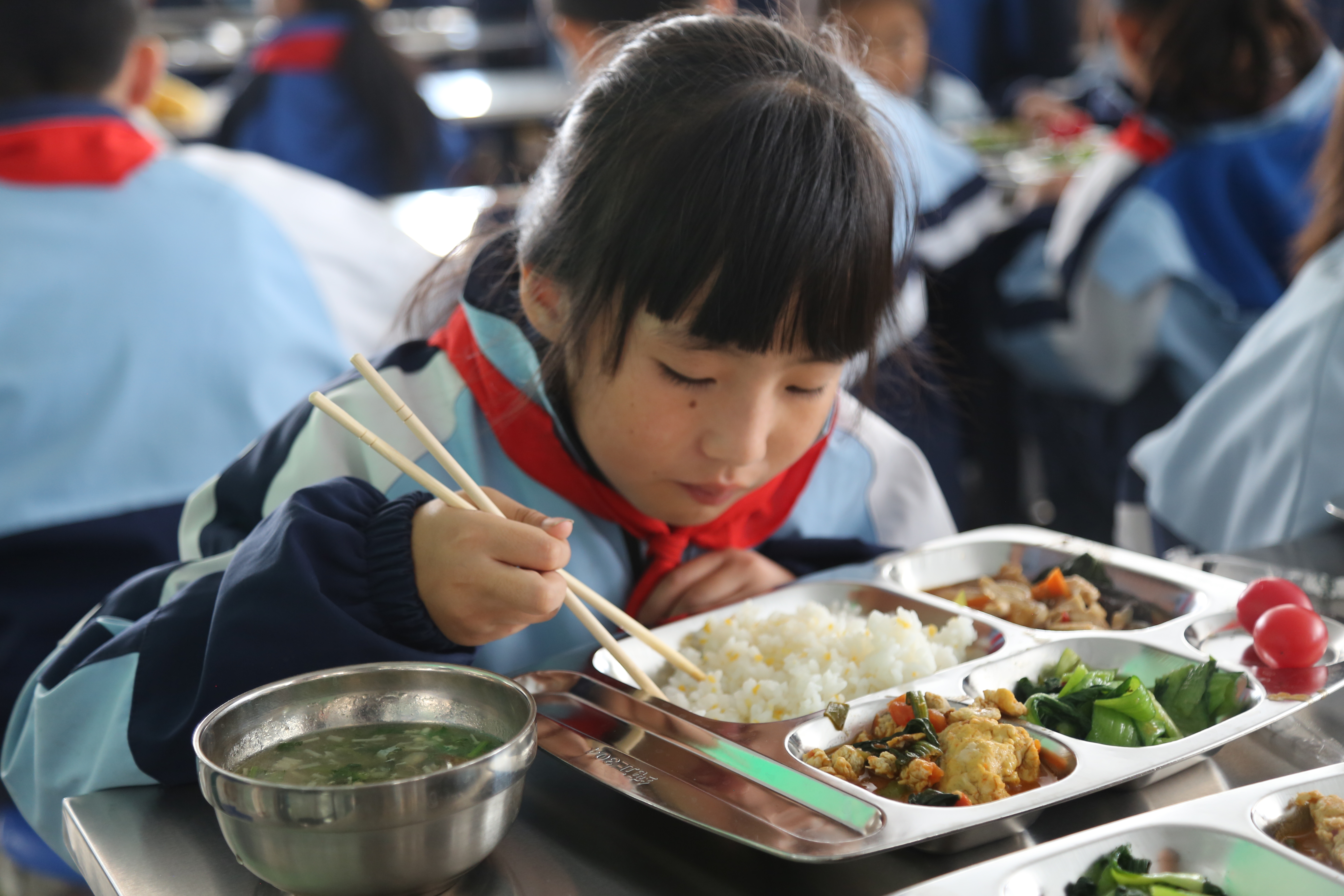 3月20日是西吉县第八小学春季家长开放日,部分学生家长走进校园,深入食堂后厨,亲身体验并监督营养餐配餐工作。为确保学生就餐质量,学校实行领导、教师、家长陪餐制,大家还可以通过扫描校门口的二维码,实时查看后厨情况,透明监管更添安心。“这样能及时了解学生就餐情况,第一时间作出反馈调整。这不仅是职责,更是一份守护。”陪餐教师马悦文介绍,学校每周按科学食谱备餐,菜品丰富,孩子们的选择也更多。“每天变着花样做的营养餐特别好吃,我最期待每周有香蕉、芒果的水果餐。”五年级学生张佳妮说。