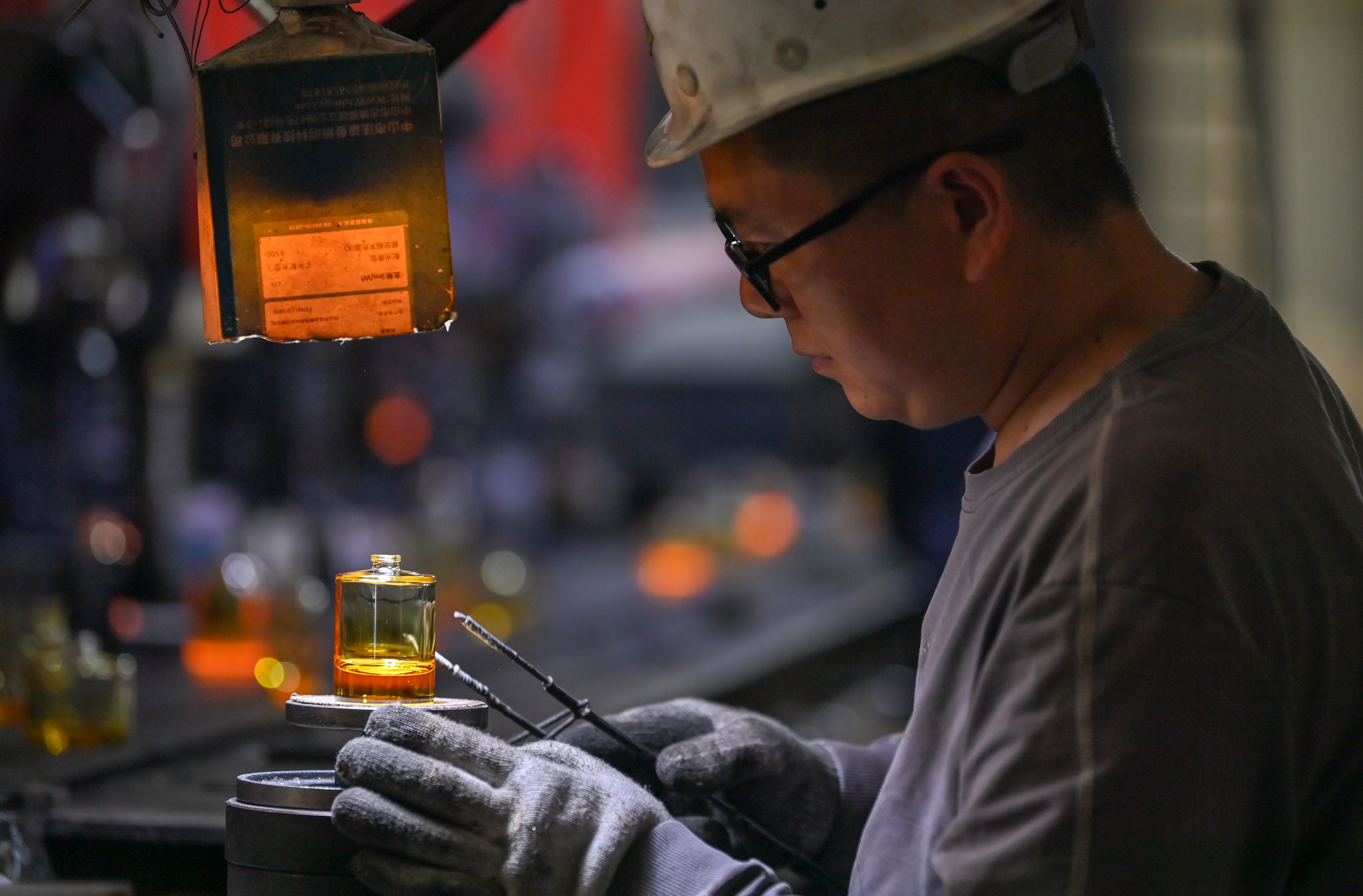 4月12日,彭阳县王洼产业园区彭阳美华玻璃制品有限公司的车间,机器低鸣中涌动着产业活力——三条自动化生产线正满负荷运转。配料、熔制、成型、冷却、质检……一道道工序行云流水,滚烫的玻璃液顺着产线流淌,转瞬便化作晶莹剔透的香水瓶,从传送带上列队而出,最终运送至海外市场。