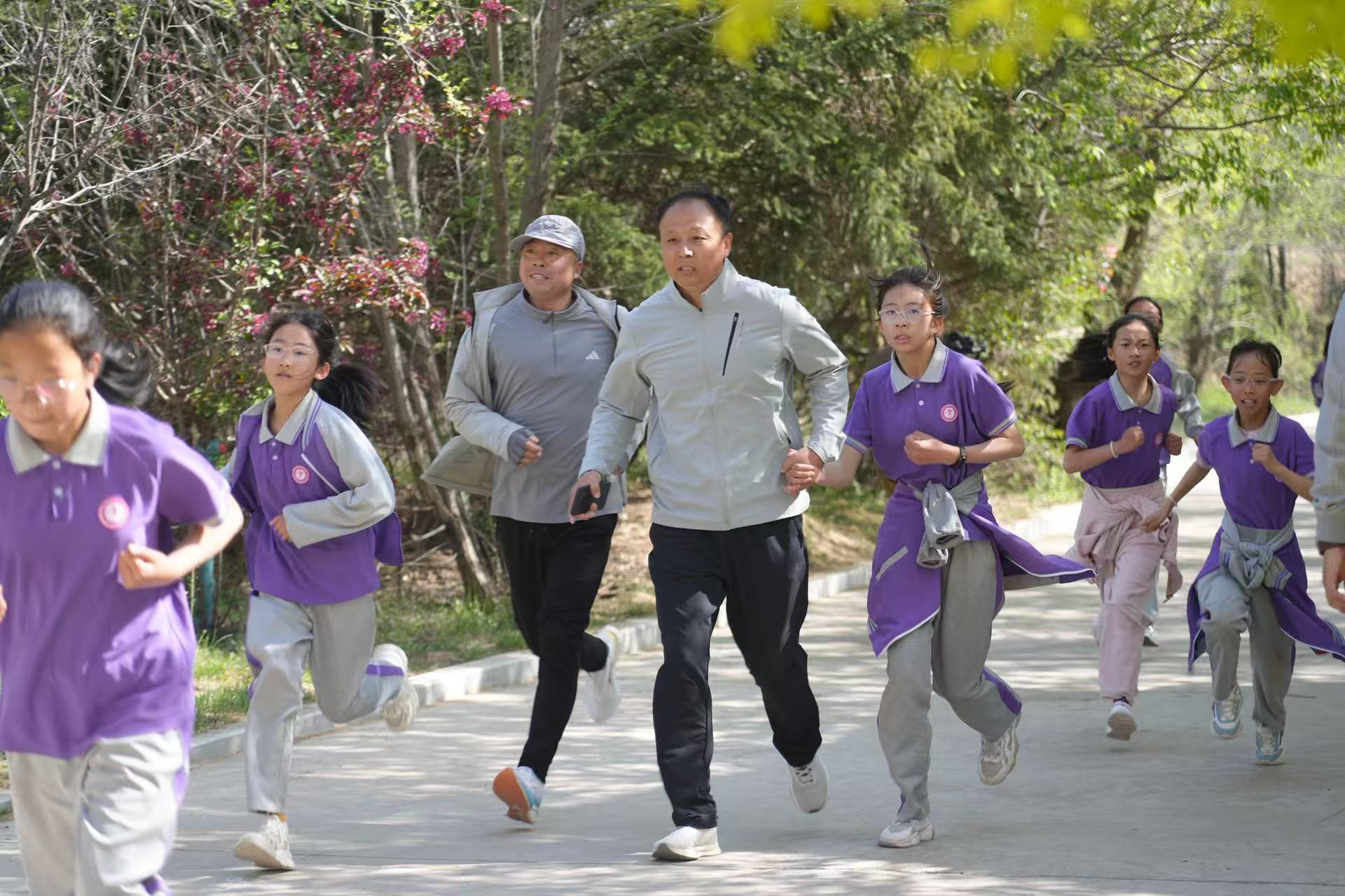 30日上午,赛事转战古雁岭森林公园户外赛道,三至六年级“踏梦长征”组正式开赛。户外赛道全长2公里,以山间步道为主体,兼具趣味性与挑战性。参赛少年们迎着春风奋力向前奔跑,在山林间展现出蓬勃的朝气与活力。返程途中,各班学生自发齐唱红色歌曲,嘹亮的歌声回荡在山野之间,让红色精神在歌声与奔跑中代代相传。