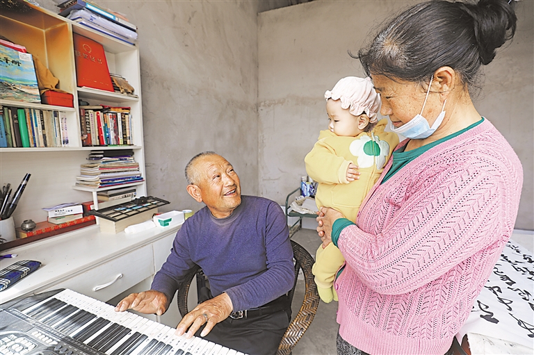 “在政府的补贴下,去年新盖的房子有上下圈梁、构造柱、‘三七墙’,结实抗震。”生存条件大幅改善,让生活质量有了极大的提升,张世祥不用像过去那样,所有时间都“束缚”在地里,空闲时还可以发展自己的爱好,练习书法、弹琴和唱戏。