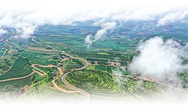 雨后的彭阳青云湾梯田公园。(资料照片)