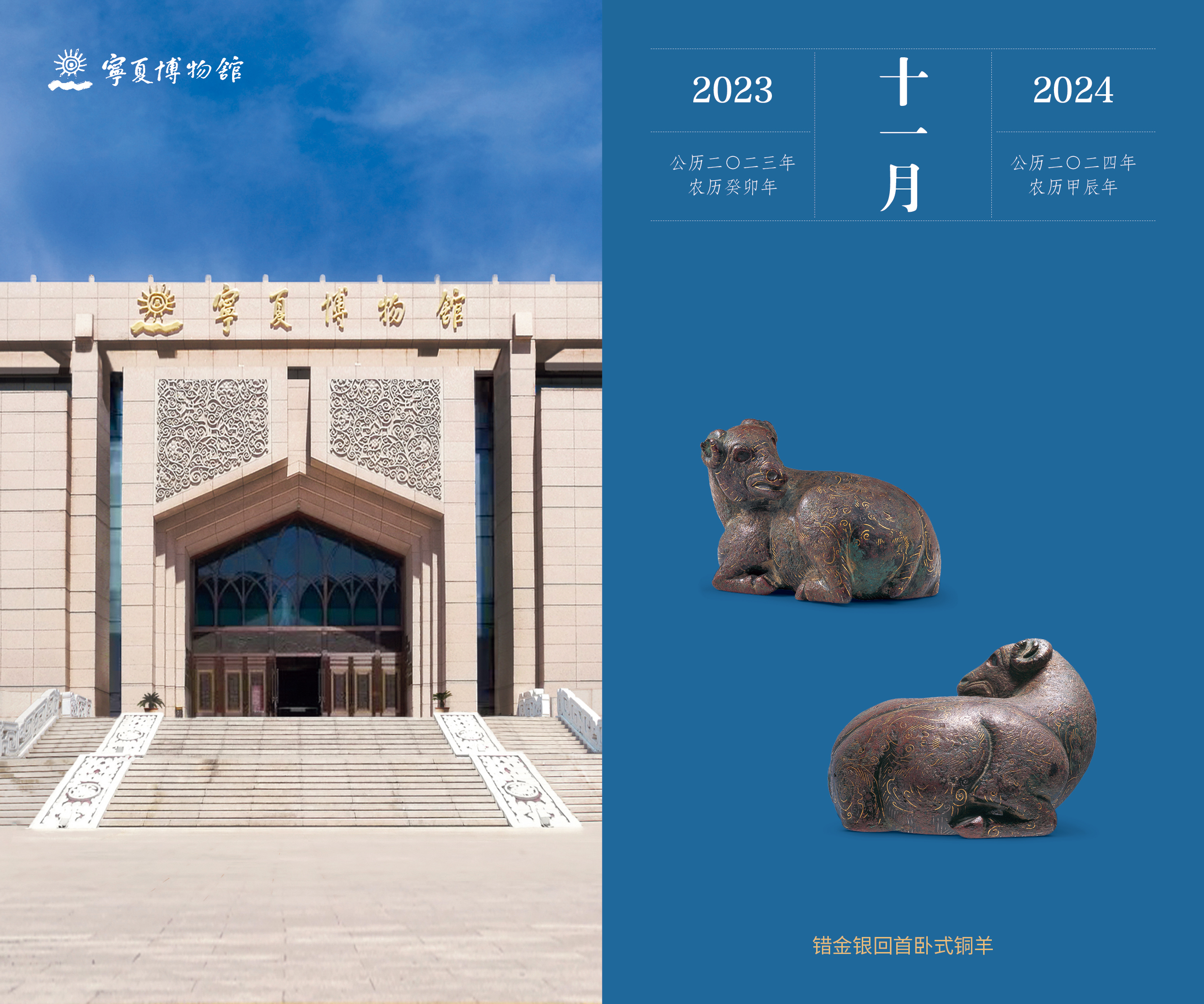 《国宝日历双年历(2023-2024)》是首部讲述中华民族文物故事的日历,承载300多幅精美珍贵的文物图片。其中,宁夏博物馆的镇馆之宝“鎏金铜牛”及“错金银回首卧式铜羊”等26件文物入选其中。该日历以月份为单位,每月详细介绍不同博物馆的国宝文物,带领观众了解这些文物凝聚的历史、承载的文明。同时,此次推出的国宝日历还增加了“玩转打卡盖章”互动环节,观众可携带此本日历去联合的19家文博单位集齐各家博物馆的独属印章。