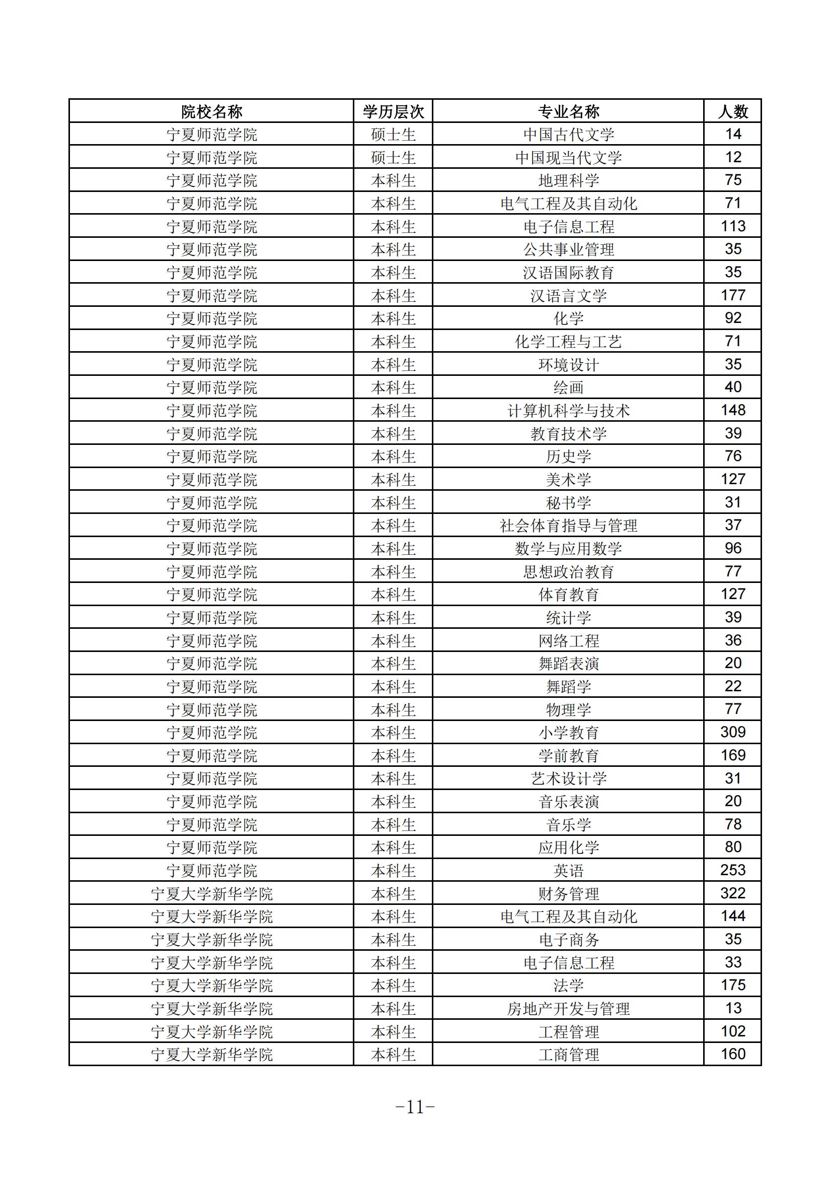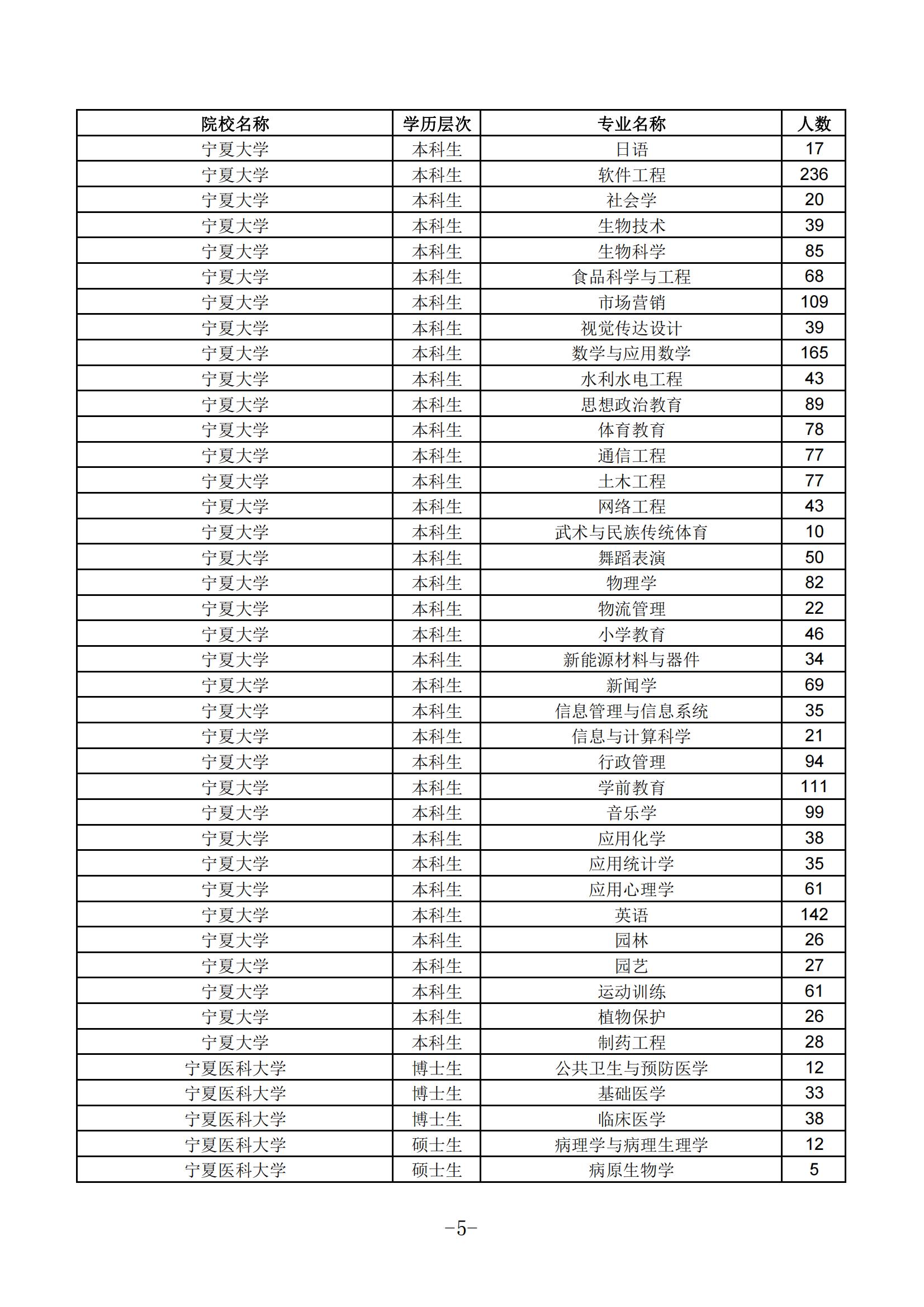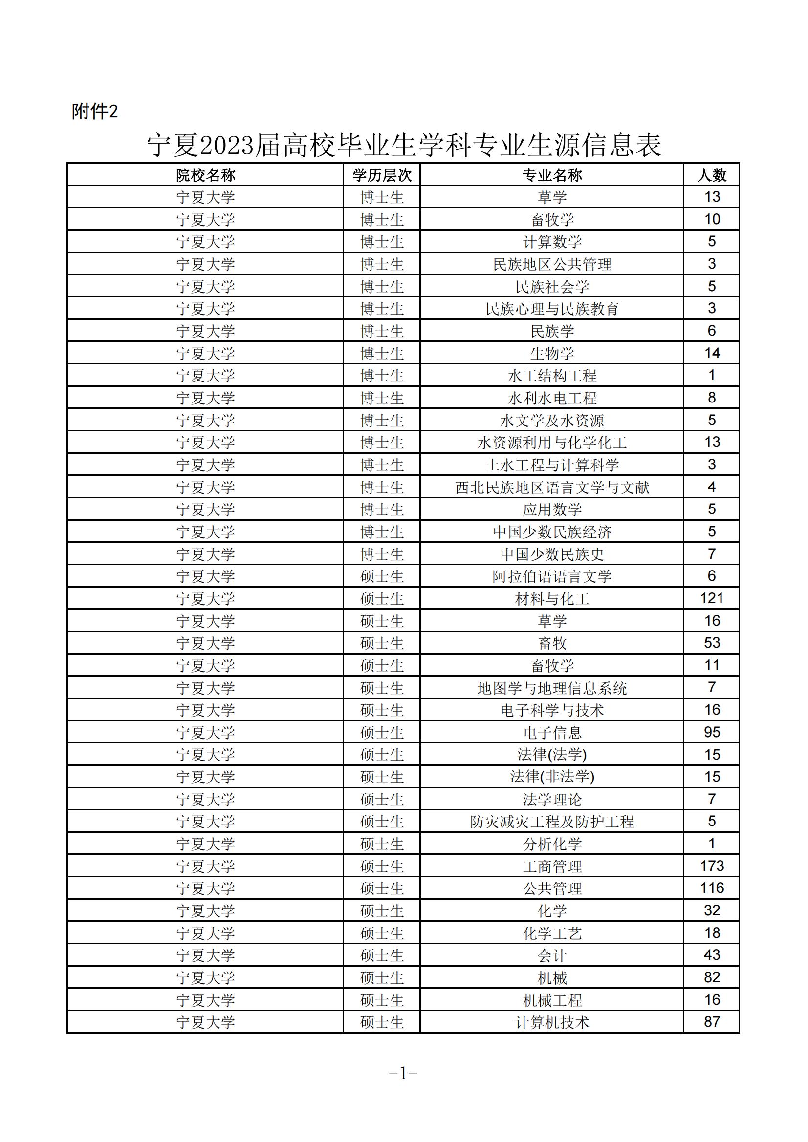 宁夏教育厅公布宁夏2023届高校毕业生学科专业生源信息