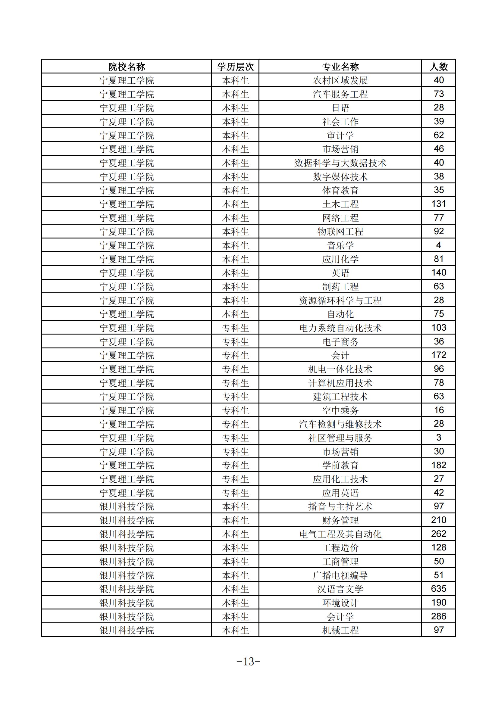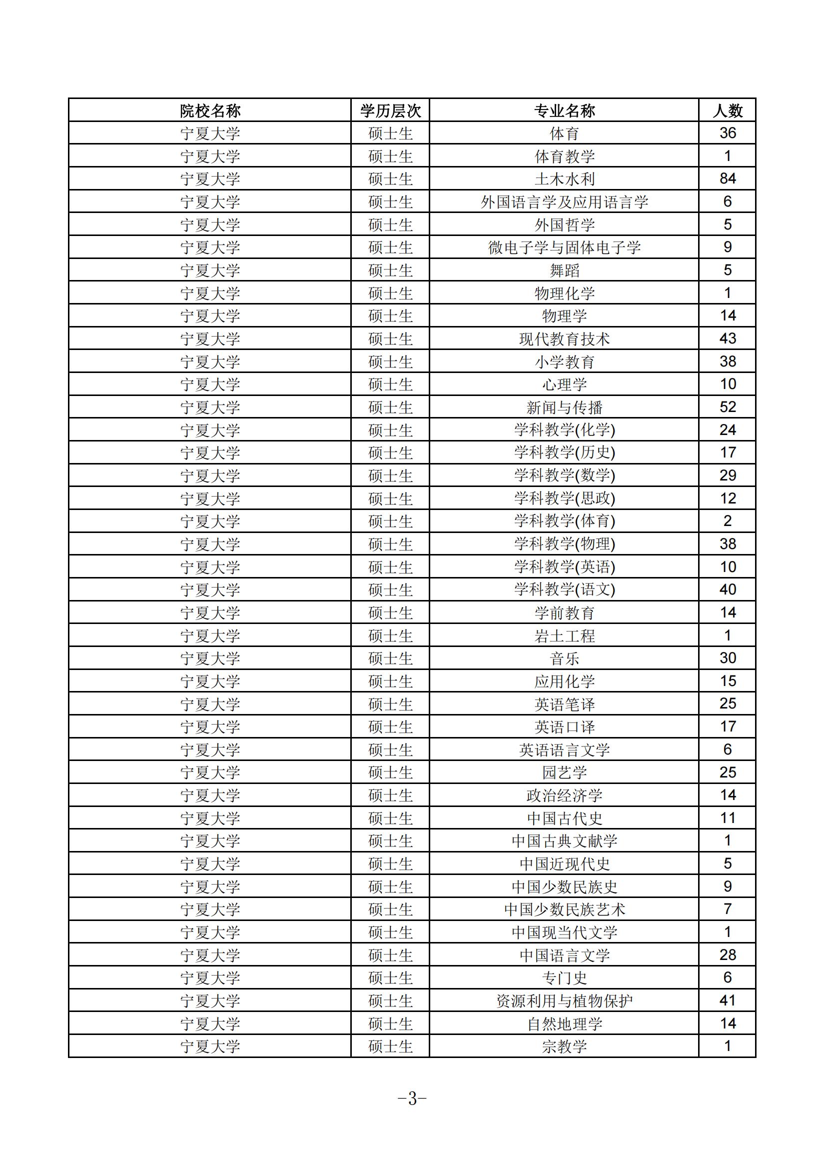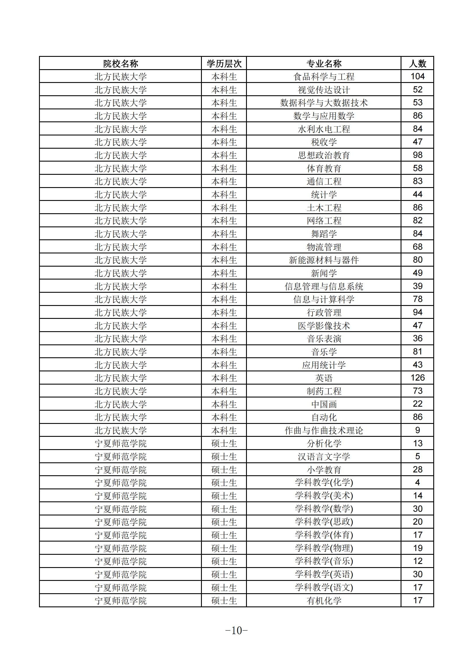 宁夏教育厅公布宁夏2023届高校毕业生学科专业生源信息