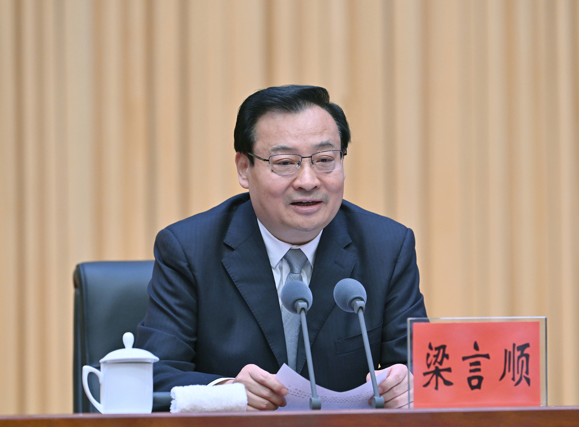 自治区党委书记、自治区党委主题教育领导小组组长梁言顺讲话。
