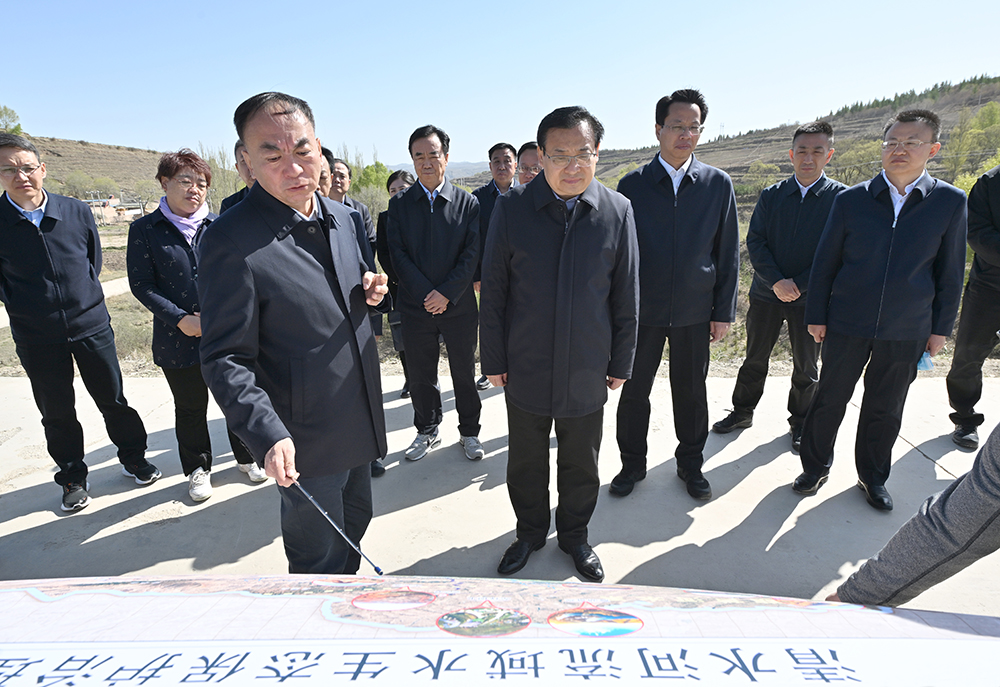 4月30日,梁言顺来到固原市原州区开城镇黑刺沟水源地,了解清水河源头生态保护治理情况,察看清水河固原段水源地保护、水土保持、生态治理成效。