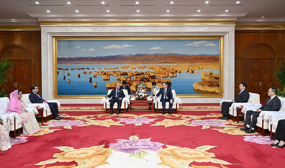 5月29日,自治区党委书记、人大常委会主任梁言顺在银川会见了由孟加拉国人民联盟主席团成员、议会外事委员会主席穆罕默德·法鲁克·汗率领的人民联盟干部考察团。