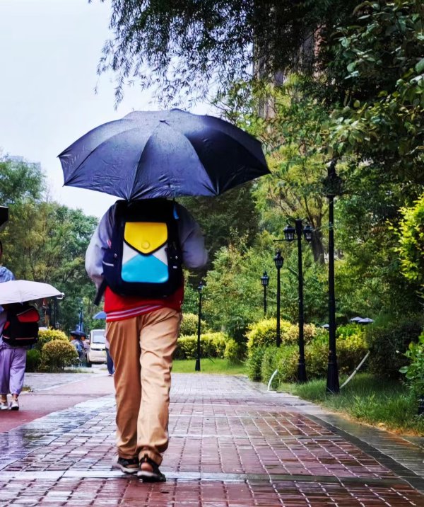 学生撑伞上学。新消息报记者 陈秀梅 摄