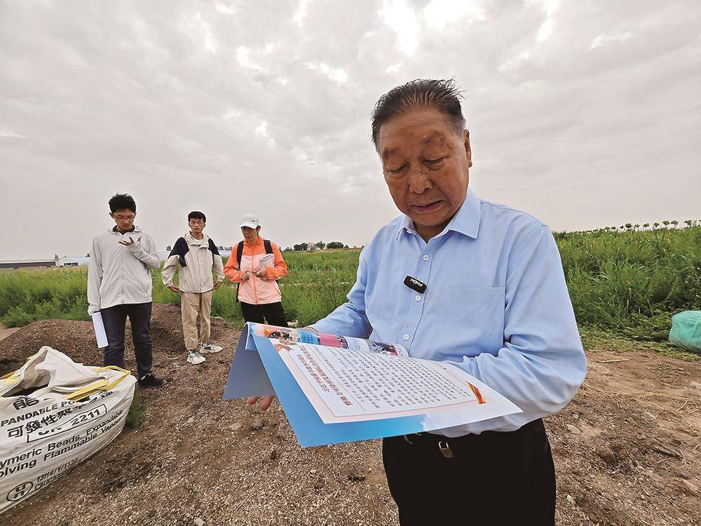 2023年盛夏八月,林占熺在酷暑烈日下走进宁夏石嘴山的一大片盐碱地,置身两米多高巨菌草丛,在蚊虫肆意叮咬中,他和他的团队沉浸在紧张有序的工作中。