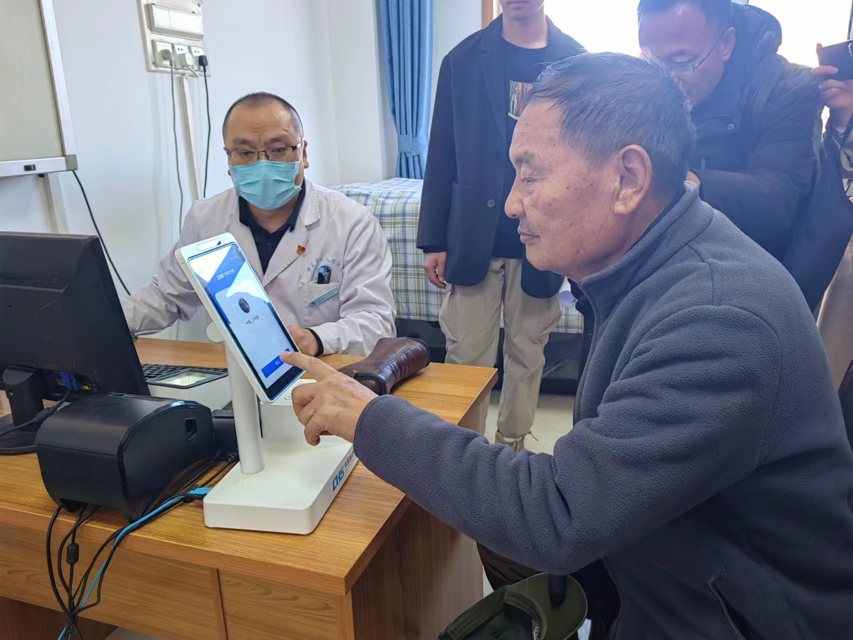 贺书年按照医生的提示,面向桌上的仪器,只听“叮”的一声,刷脸支付已完成,贺书年点击屏幕确认缴费。整个流程只花了几秒钟。“太方便了,以前看病缴费要楼上楼下来回跑,咱们老年人腿脚不方便,特别麻烦,现在,不用带身份证、医保卡、银行卡,连手机都不需要拿出来,坐在这里就完成了结算、缴费。”