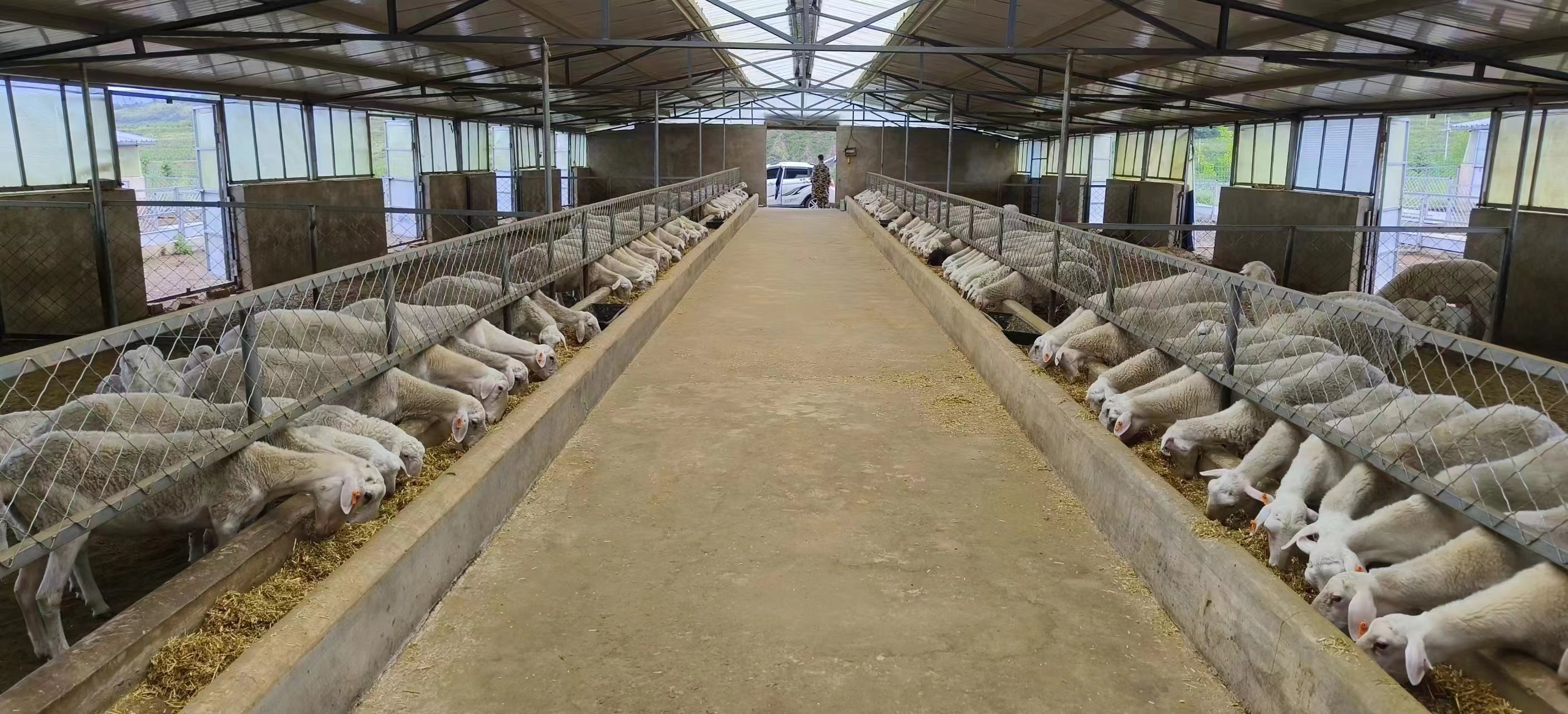 现代化的养殖大棚提高了肉羊产量。