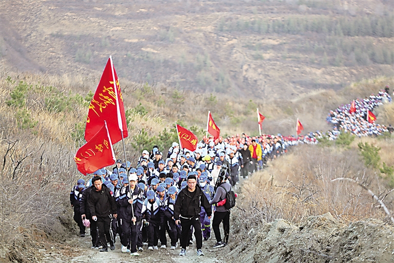 固原市第二中学和弘文中学师生徒步前往彭阳县古城镇任山河烈士陵园,祭奠缅怀革命先烈。