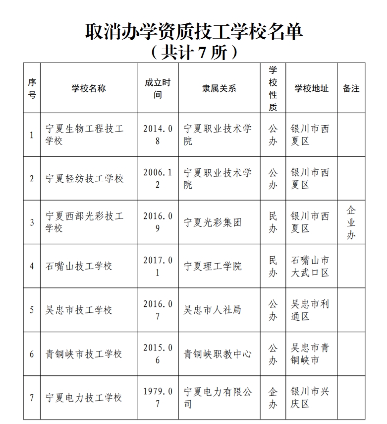 宁夏取消7所“僵尸”技工学校办学资质