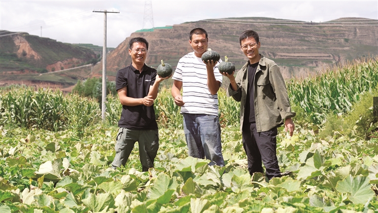 8月26日下午,在兴隆镇兴隆村南瓜地里,马斯诺和同伴查看试验田里套种的贵族南瓜、板栗南瓜。“这些南瓜长得太好了,个大饱满。”他将摘下来的新品南瓜举在手中,还原当天直播和拍摄的情景,“西吉光照充足,土壤条件好,昼夜温差大,这些因素能够促进南瓜的生长,来年可以再种植些新品种。”