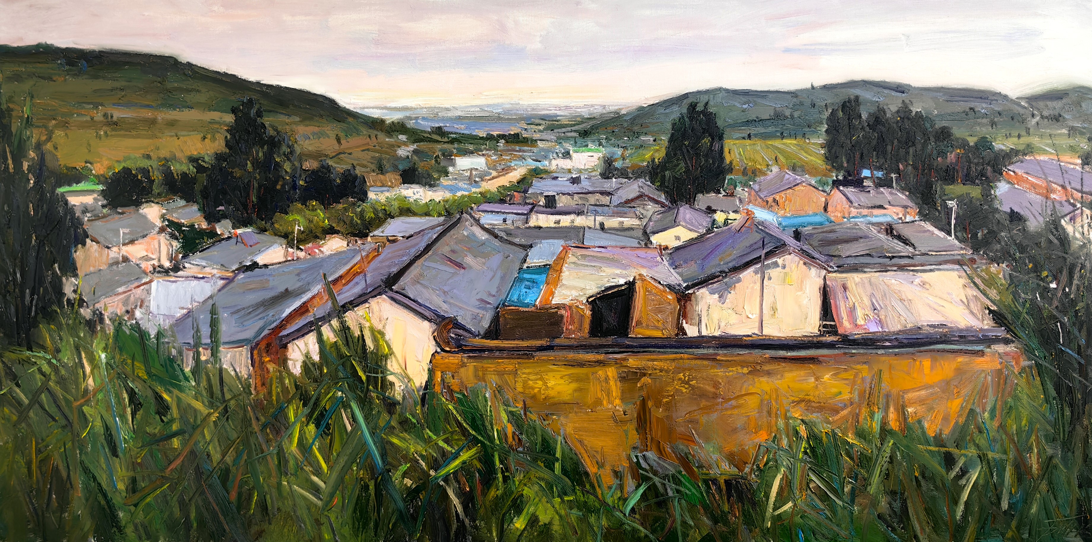 村庄油画。