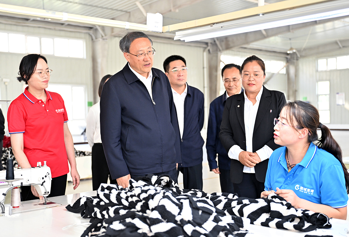 李邑飞在银川国家高新技术产业开发区羊绒园区宁夏新澳羊绒有限公司,调研现代纺织全产业链发展情况。