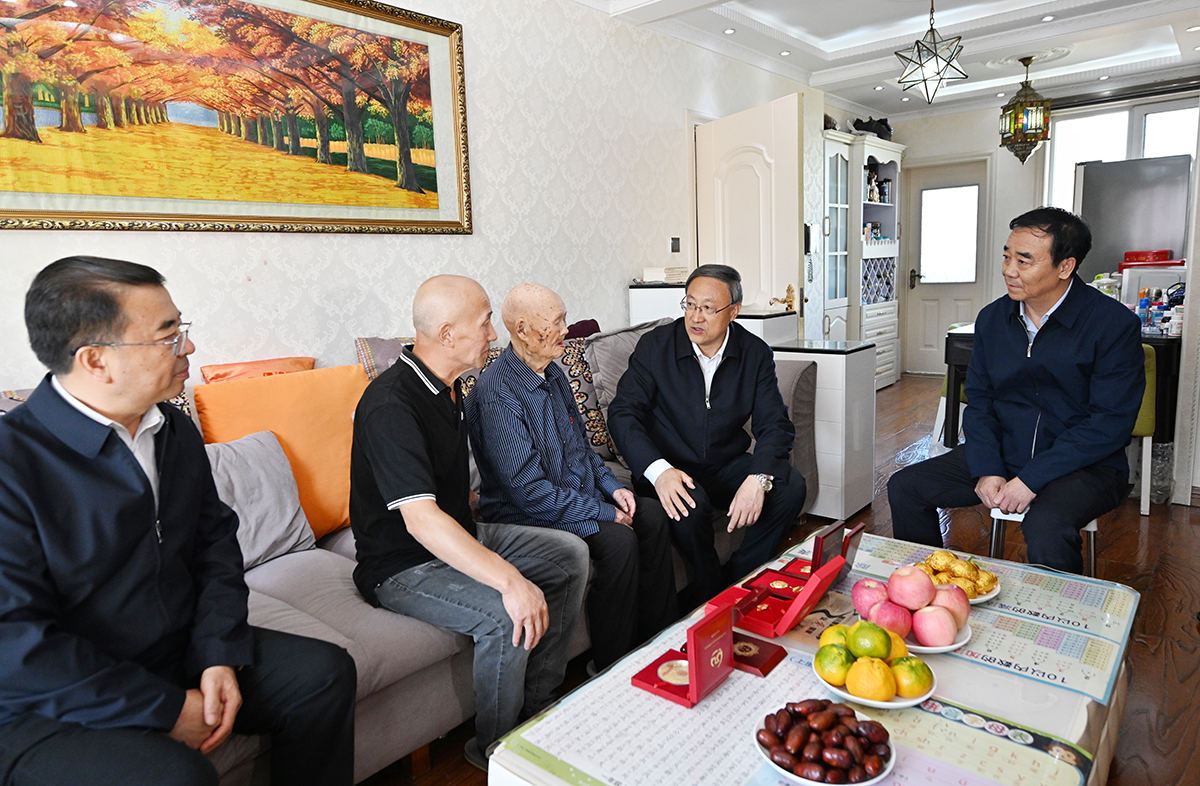 李邑飞来到105岁高龄的新中国成立前老党员张鹤田家中,与他促膝交谈,关切询问身体和生活起居情况。得知老人1942年入党,曾投身解放战争,后又来宁支援“三线”建设,李邑飞对他表示感谢,指出老战士、老党员是革命、建设、改革开放和新时代光辉历程的见证者,我们要牢记革命前辈的丰功伟绩,把红色基因代代传承下去,各级党组织要关心关爱老党员,照顾好他们的生活,让他们安享晚年。
