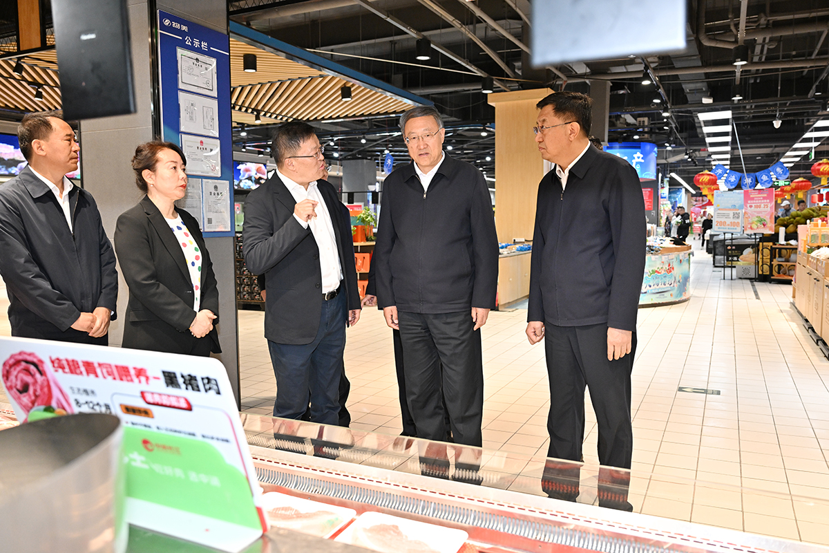 李邑飞在新华百货连锁超市物美森林公园店,调研节日消费、市场保供稳价等情况。